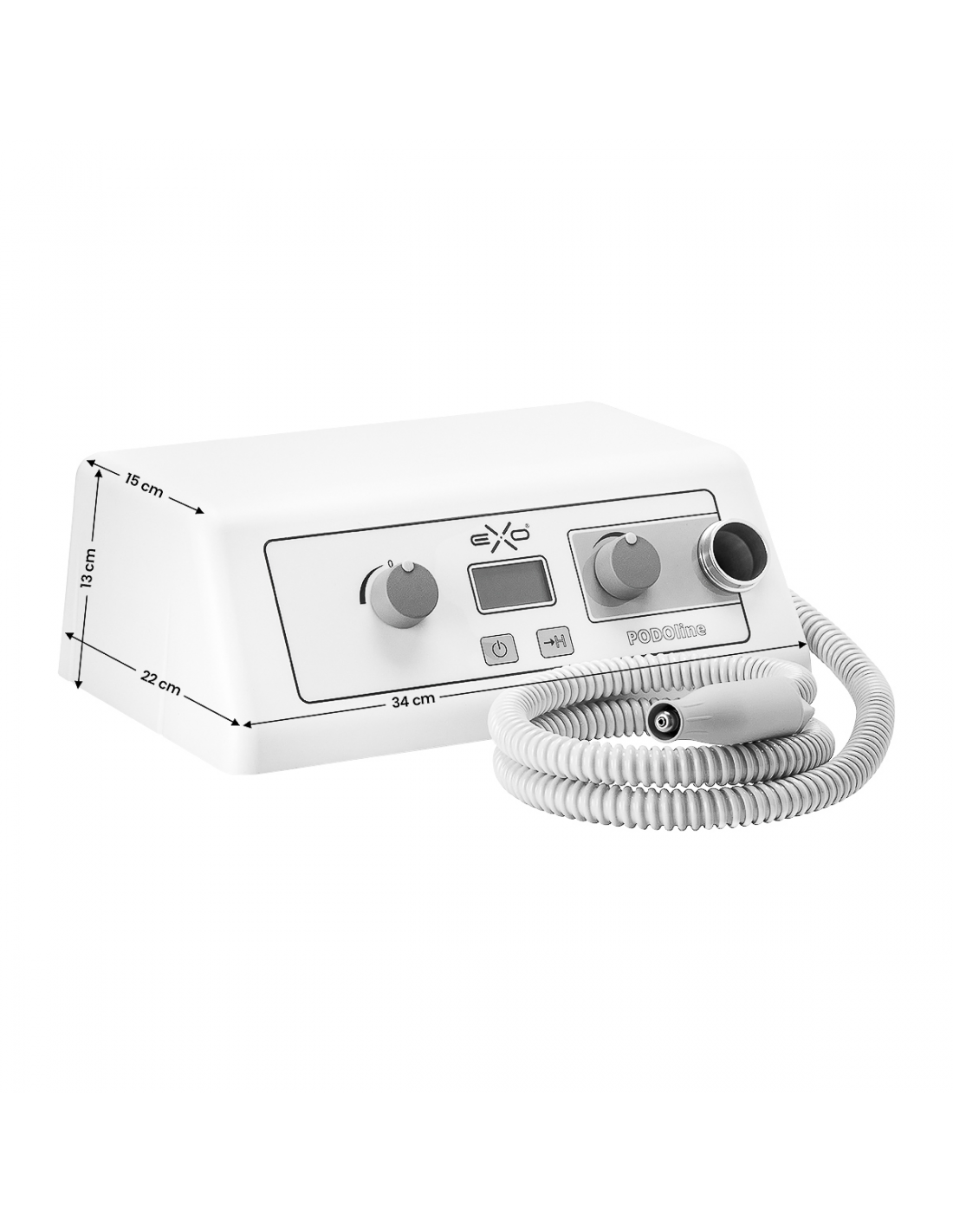 Frezarka EXO Podo Line zbudowana zgodnie z Dyrektywą 93/42/EWG dotyczącą sprzętu medycznego jest urządzeniem, które gwarantuje jakość i bezpieczeństwo. Przeznaczona do profesjonalnych zabiegów pedicure oraz do leczenia dolegliwości stóp. Zalecana dla wykwalifikowanych podologów lub pedicurzystek.
