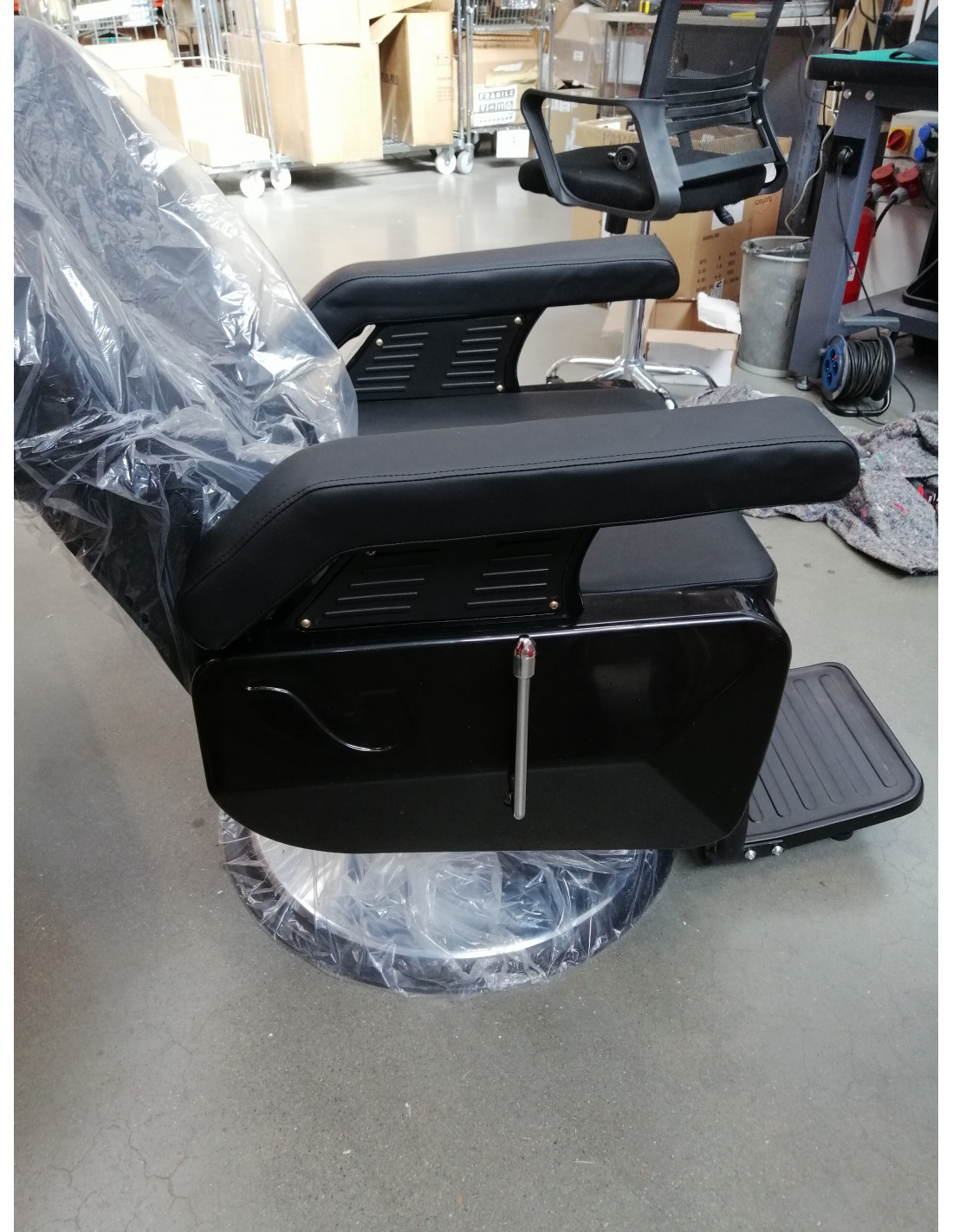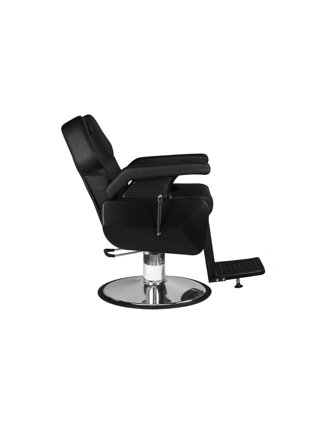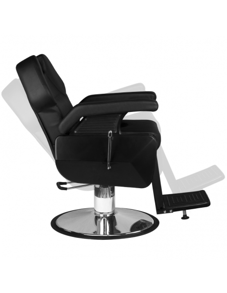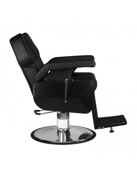 Nowość w naszej ofercie - fotel barberski NEW YORK. To nowoczesny, doskonale wykończony mebel, dający klientowi salonu maksymalne uczucie komfortu podczas wykonywanych zabiegów. Poza regulacją góra-dół, fotel posiada odchylane oparcie oraz regulowany podnóżek. Mimo małych gabarytów, możliwe jest ustawienie klienta w dogodnej, półleżącej pozycji. Wygodne siedzisko pokryte jest wysokiej jakości ekoskórą. Szeroka, chromowana podstawa gwarantuje stabilność mebla podczas pracy. Dodatkową zaletą jest możliwość łatwej regulacji zagłówka. Mebel w kolorze czarnym.
