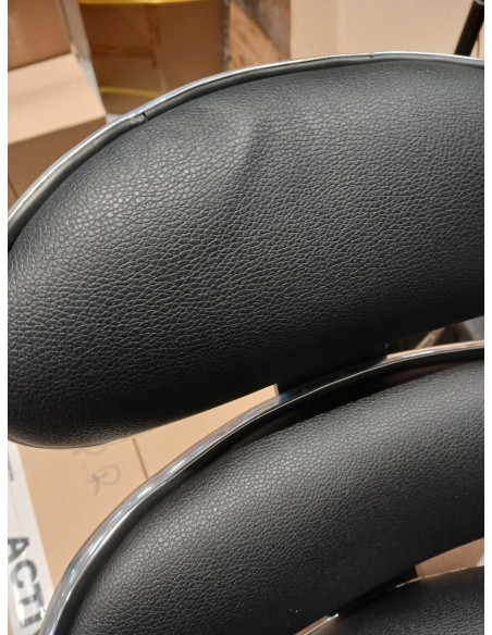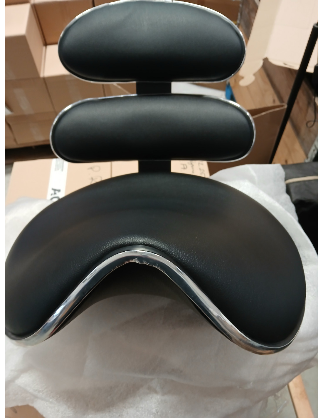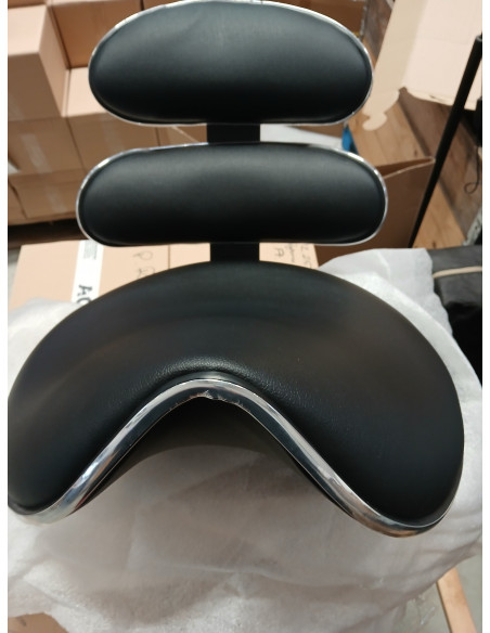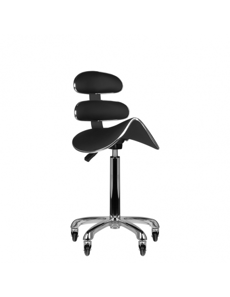 Wygodny, stabilny taboret kosmetyczny/fryzjerski z profilowanym siedziskiem i ergonomicznym oparciem. Osadzony na pięcioramiennej podstawie z rewelacyjnymi kauczukowymi i łożyskowanymi kółkami Roll Speed, które gwarantują lekkość w przemieszczaniu się. Wykonany z eko-skóry w kolorze czarnym.