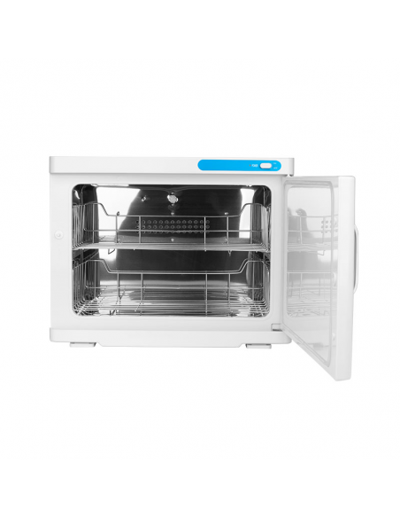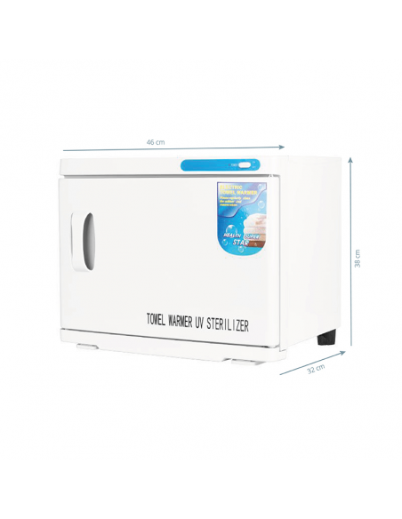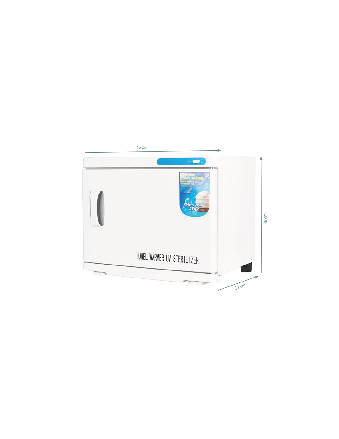 Profesjonalny podgrzewacz do ręczników ze sterylizatorem UV, przydatny w SPA, większych gabinetach kosmetycznych, oraz gabinetach masażu. Pokaźne rozmiary wewnętrzne, pozwalają umieścić kilkanaście ręczników różnej wielkości.
