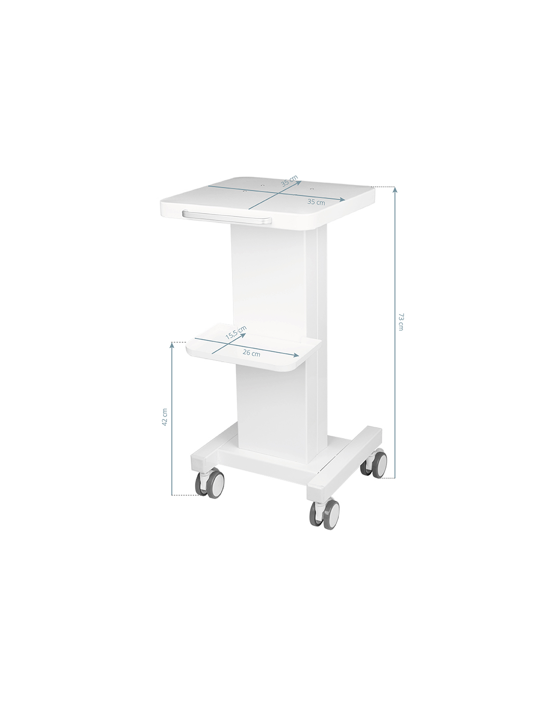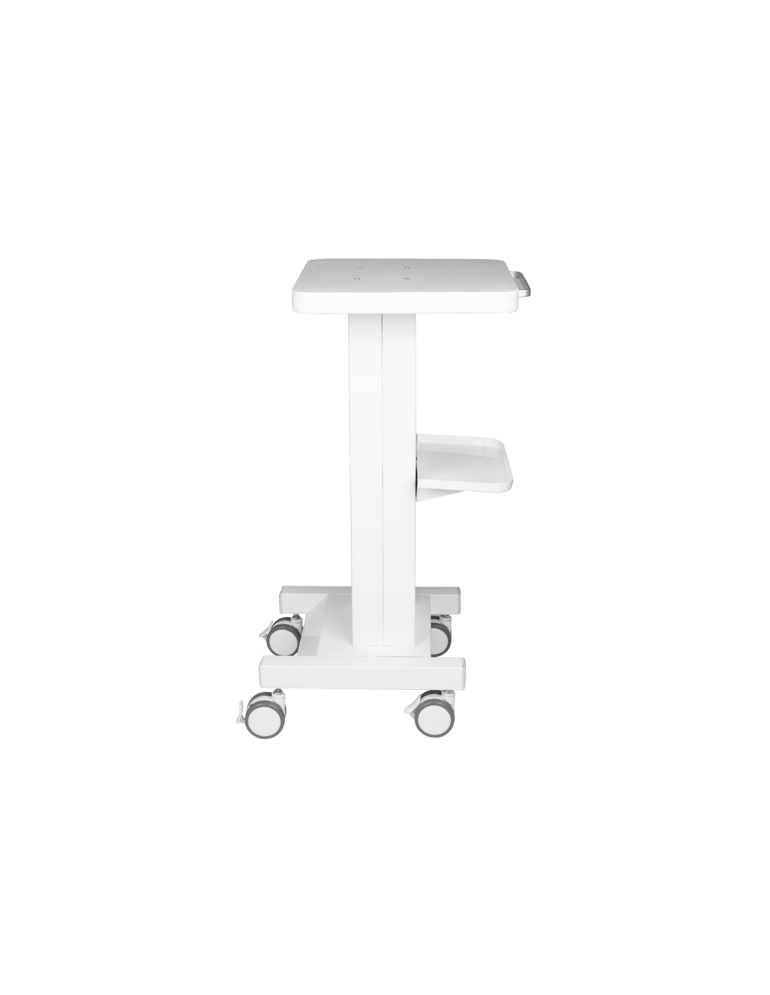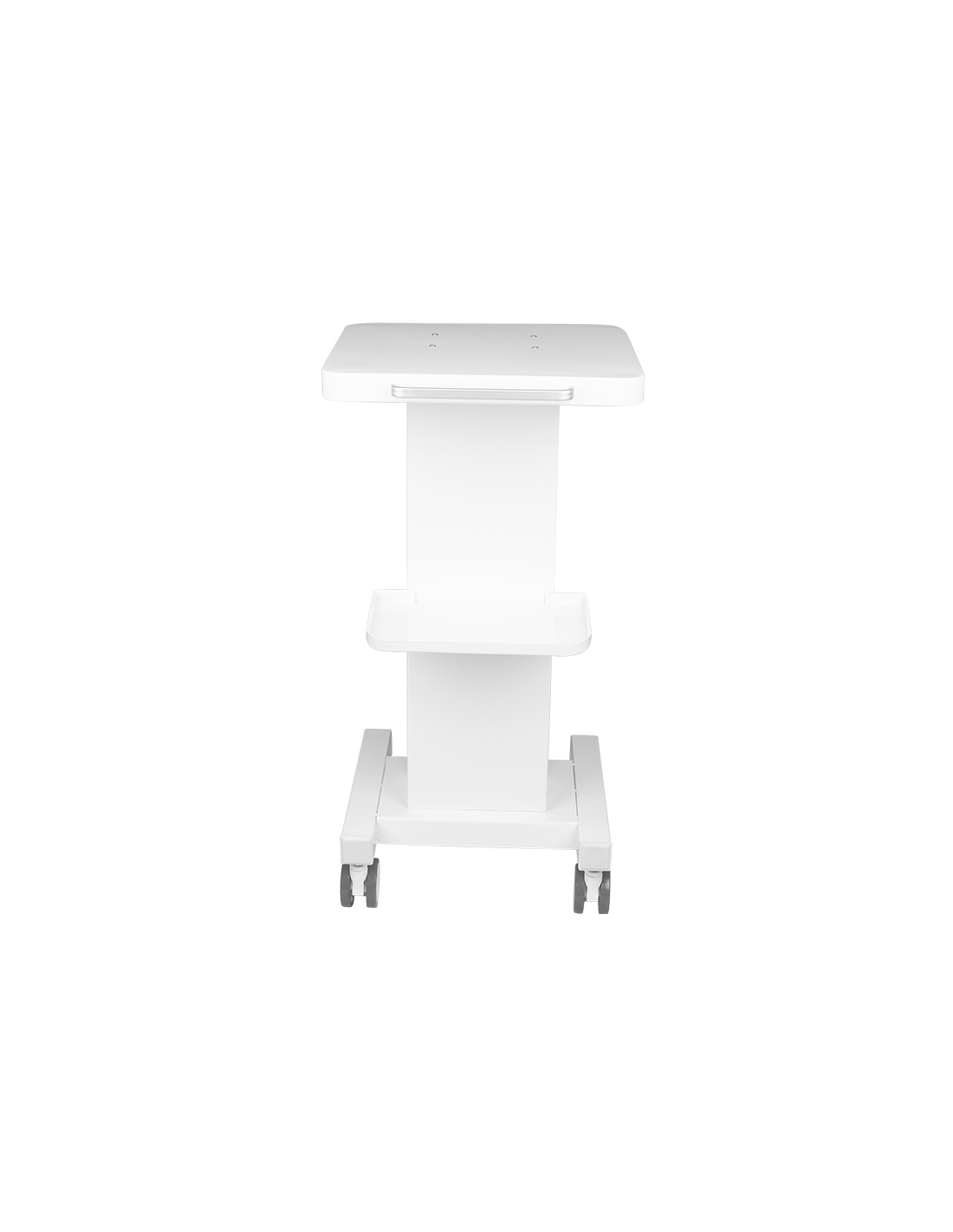 Funkcjonalny, metalowy stolik z gumowymi kółkami z funkcją blokady. Idealnie sprawdza się jako stolik pod urządzenie kosmetyczne. Posiada stabilną półkę na urządzenie oraz drugą na akcesoria a dzięki kółkom stolik jest mobilny i łatwy do przesuwania. Mebel zapewnia wygodę i komfort podczas pracy