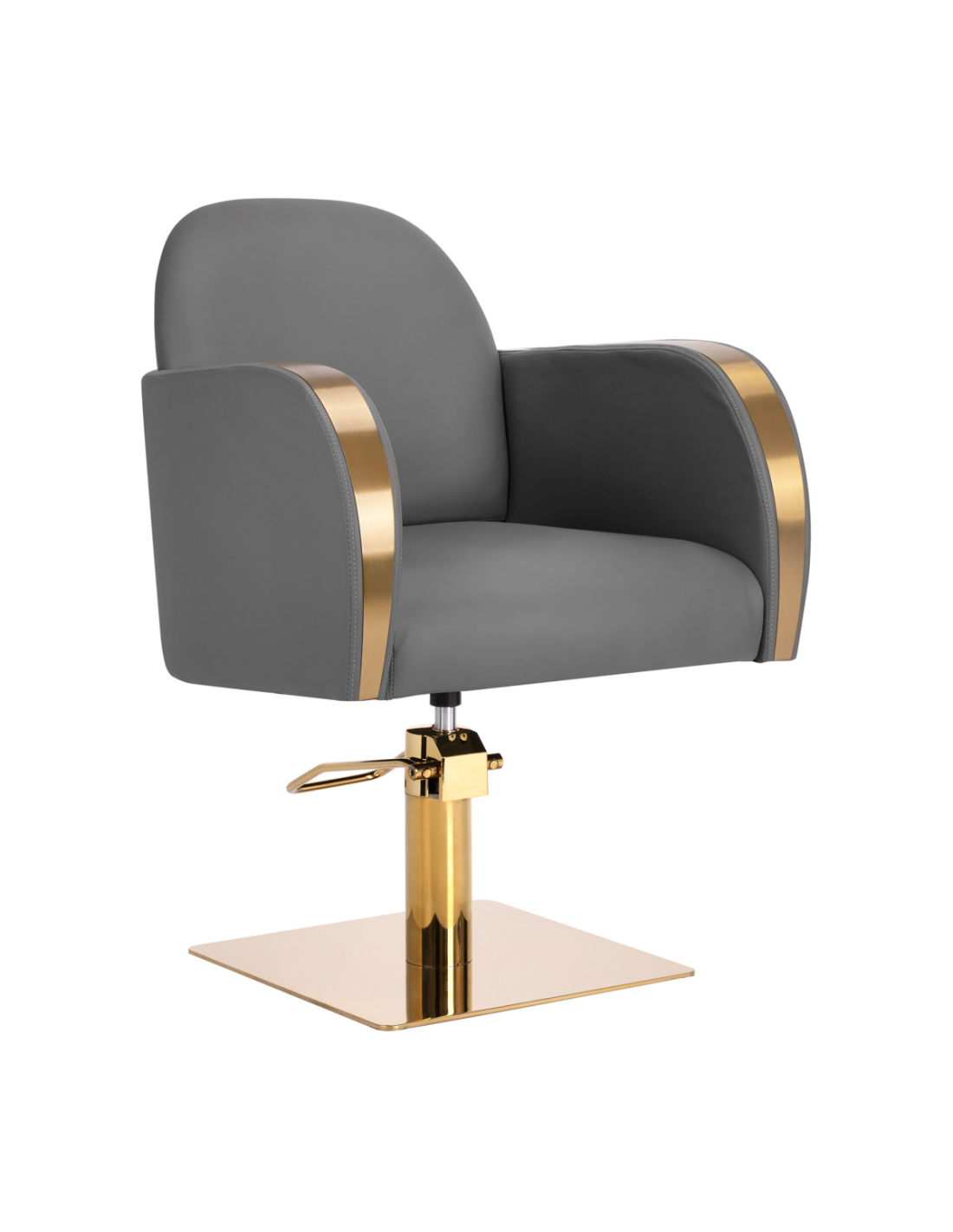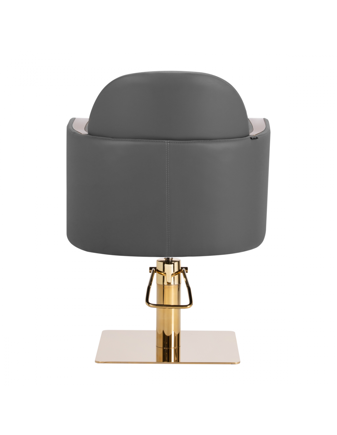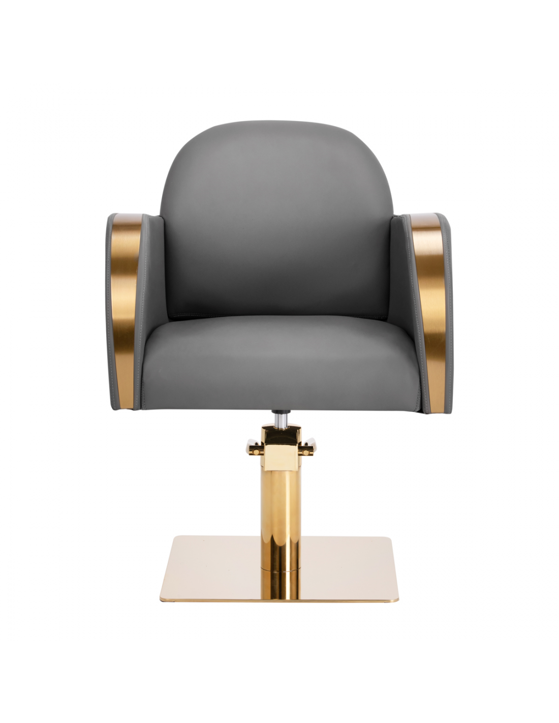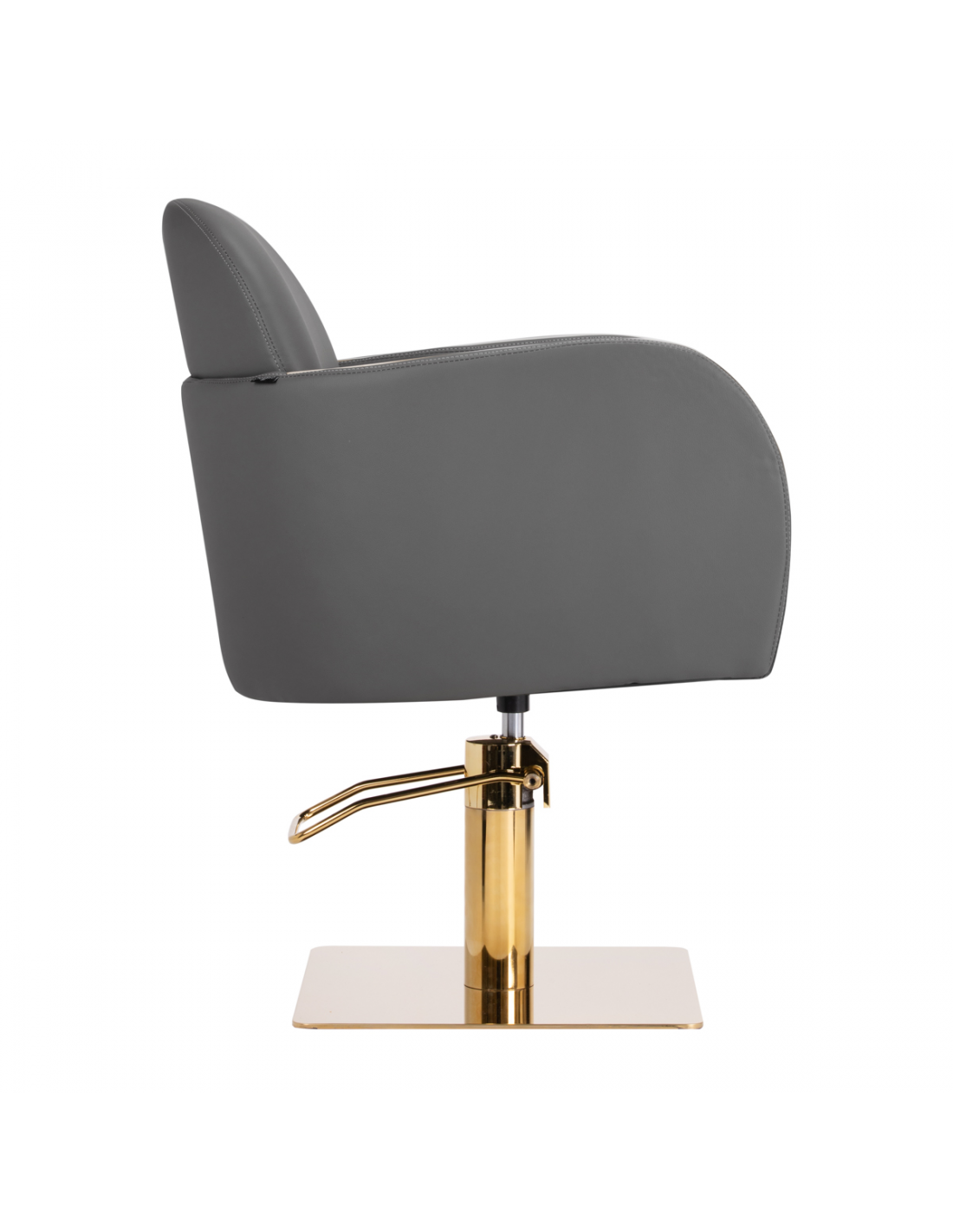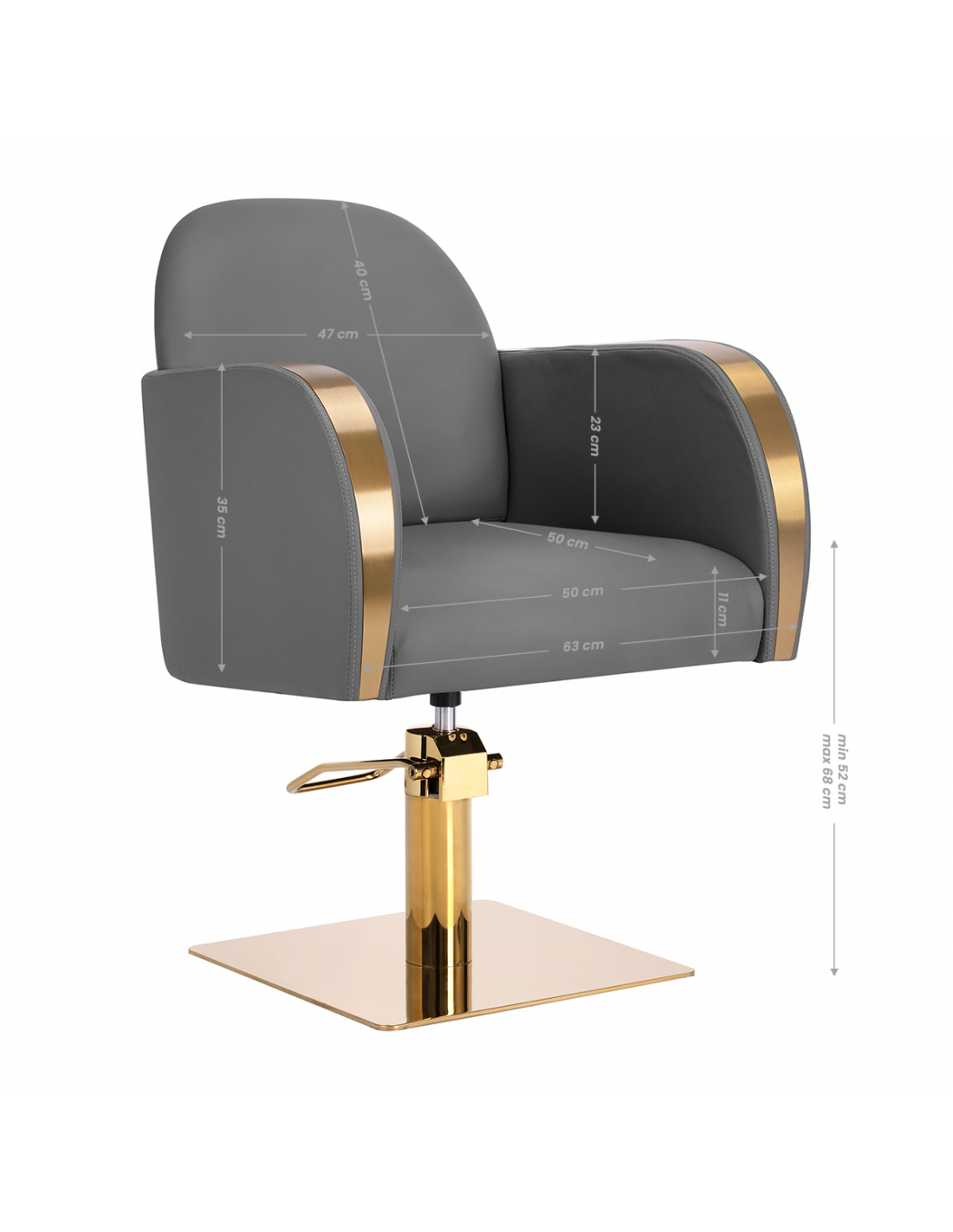 Solidna, kwadratowa podstawa zapewnia stabilność w trakcie użytkowania. Gładka powierzchnia sprawia, że element ten jest łatwy do utrzymania w czystości. Szerokie siedzisko, wypełnione odpowiednio twardą pianką, zapewnia wysoki komfort użytkowania i wygodę nawet podczas wielogodzinnych zabiegów. Podłokietniki znajdują się na odpowiedniej wysokości, dzięki czemu pozwalają na prawidłowe ułożenie barków klienta – sprawia to, że nie chowa głowy w ramionach ani się nie garbi – wyraźnie usprawniając zabiegi, w tym strzyżenie. Ułatwia to precyzyjne wykonywanie usług.