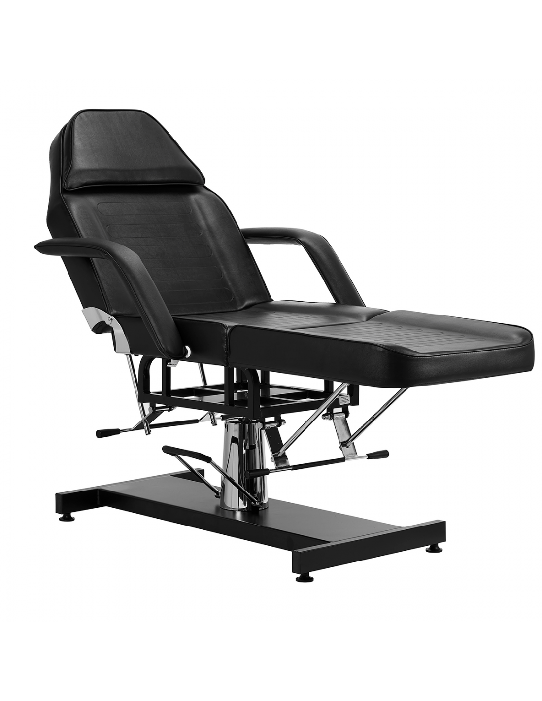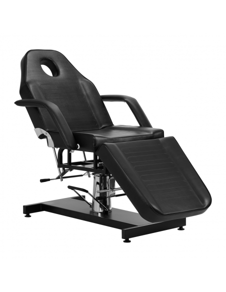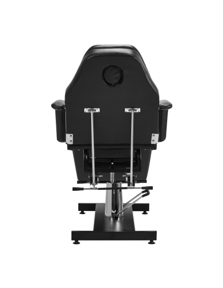 Wysokość fotela można dostosowywać w zakresie 65-79 cm bez użycia rąk za pomocą pompy hydraulicznej. Pozwala to na komfortowe korzystanie ze sprzętu osobom o różnym wzroście i umożliwia dostosowanie go do indywidualnych potrzeb zarówno klienta, jak i osoby wykonującej zabieg. Zastosowany mechanizm jest bardzo trwały i niezawodny. Dzięki otworowi w zagłówku, który jest ukryty pod odpowiednio wyprofilowaną poduszką, fotel doskonale sprawdzi się również przy zabiegach przeprowadzanych na plecach, takich jak masaże.
