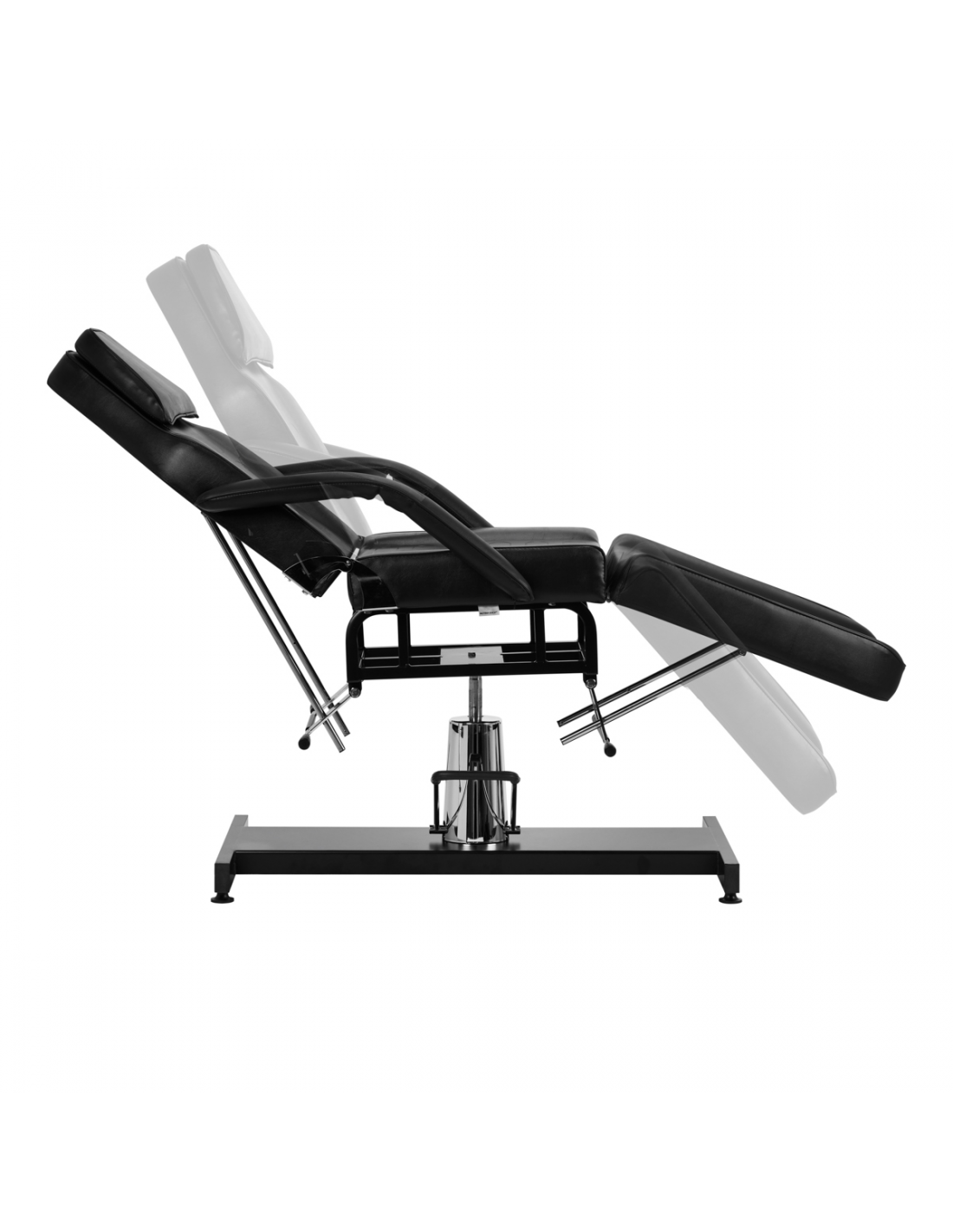 Przy pomocy specjalnych dźwigni możliwa jest bezstopniowa regulacja kątów, pod którymi znajdują się podnóżek i oparcie. Pozwala to na optymalne dostosowanie ustawień do indywidualnych potrzeb, dla prawidłowego i wygodnego wykonywania zabiegów oraz komfortu użytkowania. Fotel można rozłożyć aż do pozycji leżanki, co znacząco zwiększa jego funkcjonalność zarówno podczas zabiegów na twarz, jak i ciało.