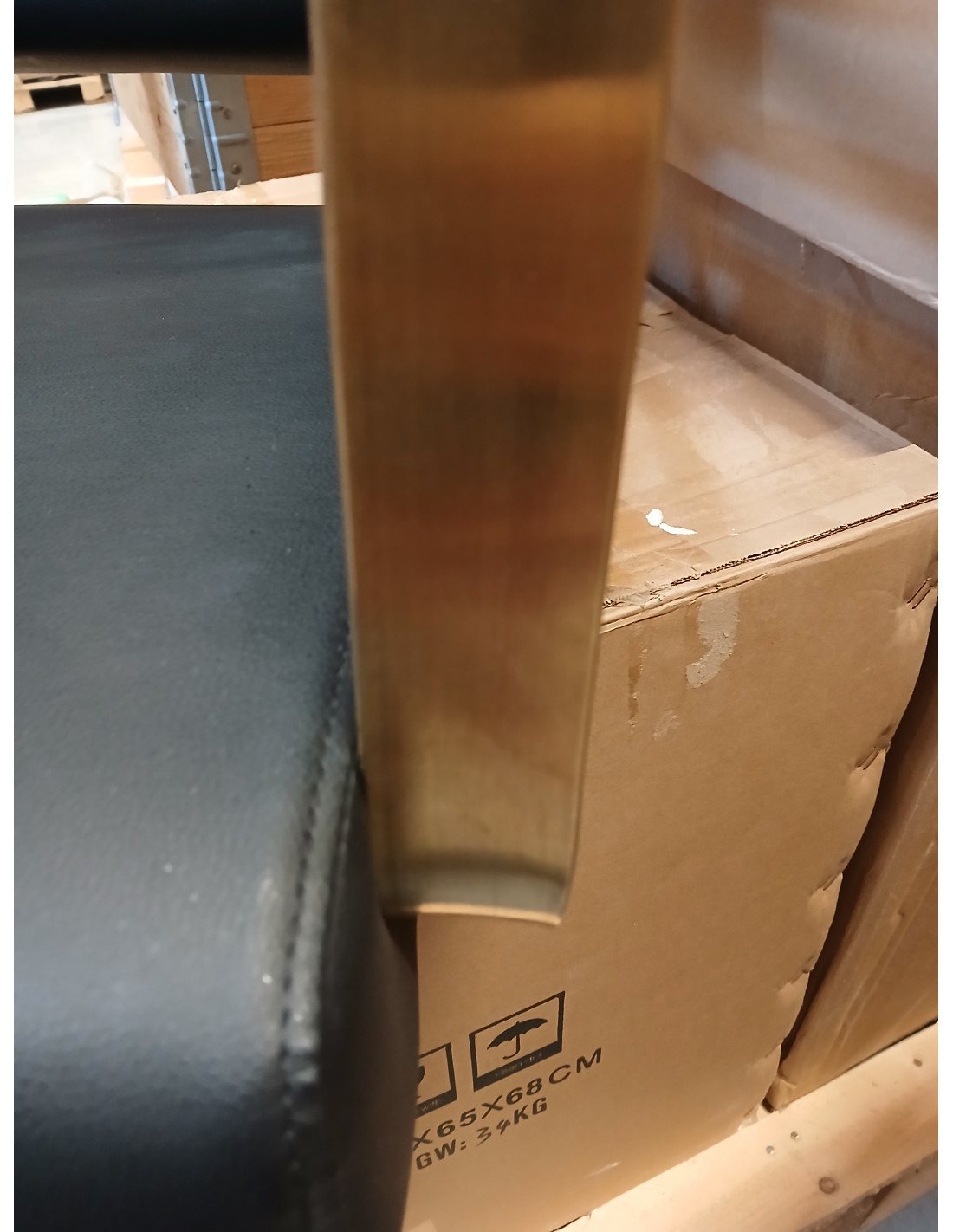 Dopełnieniem elegancji tego fotela jest złote wykończenie elementów metalowych. Powierzchnie metalowe lakierowane.