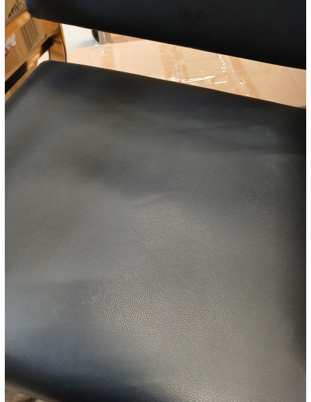 Regulowany w płaszczyźnie pionowej. Bardzo stabilny i solidny. Obicie z najwyższej jakości ekoskóry koloru czarnego.