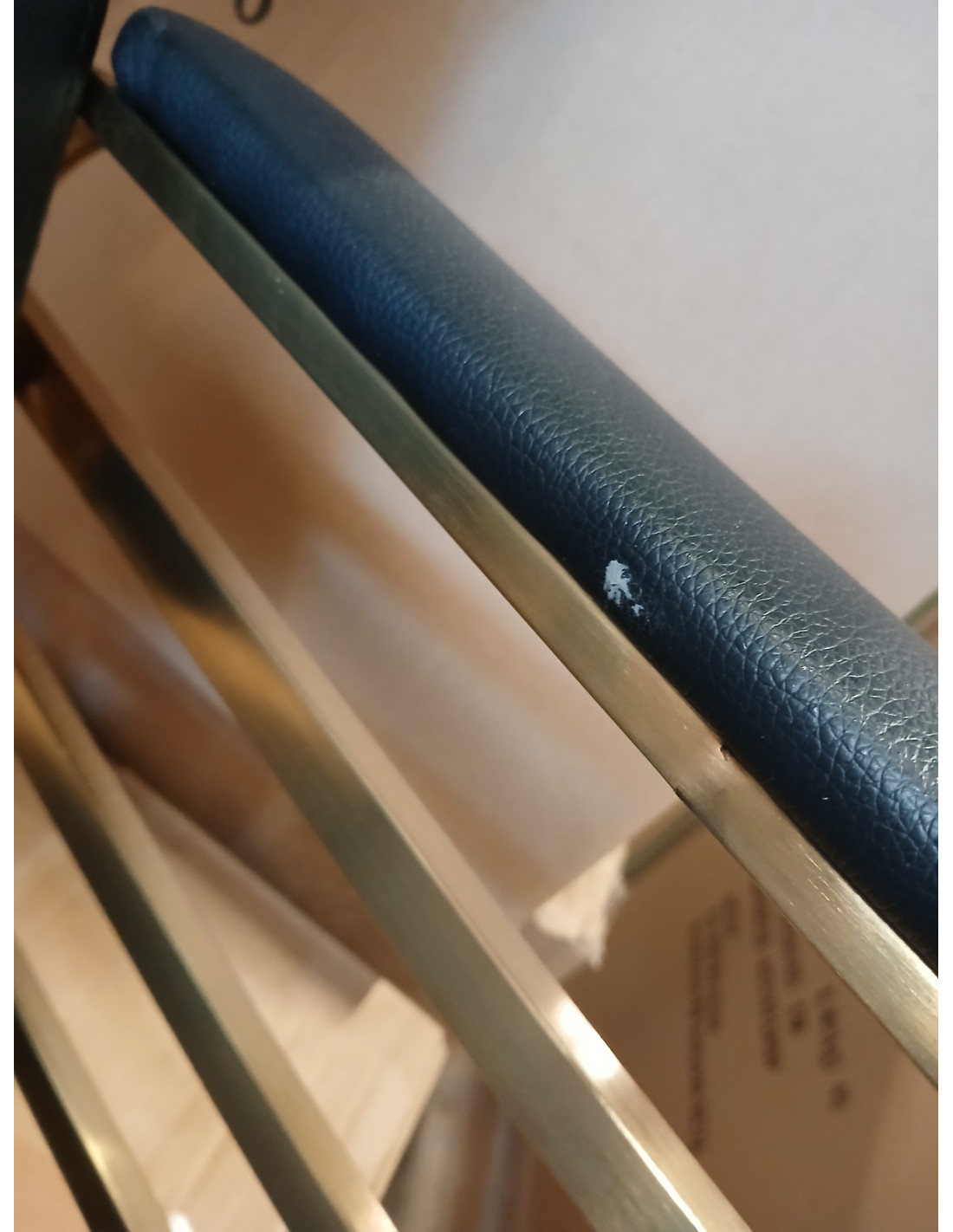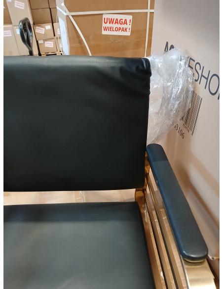 Produkt po zwrocie, lekkie ryski na stelażu, lekkie odbarwienia na tapicerce oraz odgniecenie w lewym rogu oparci, brak podnóżka - MGA4032