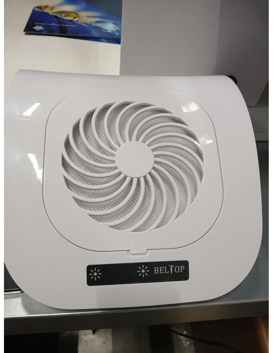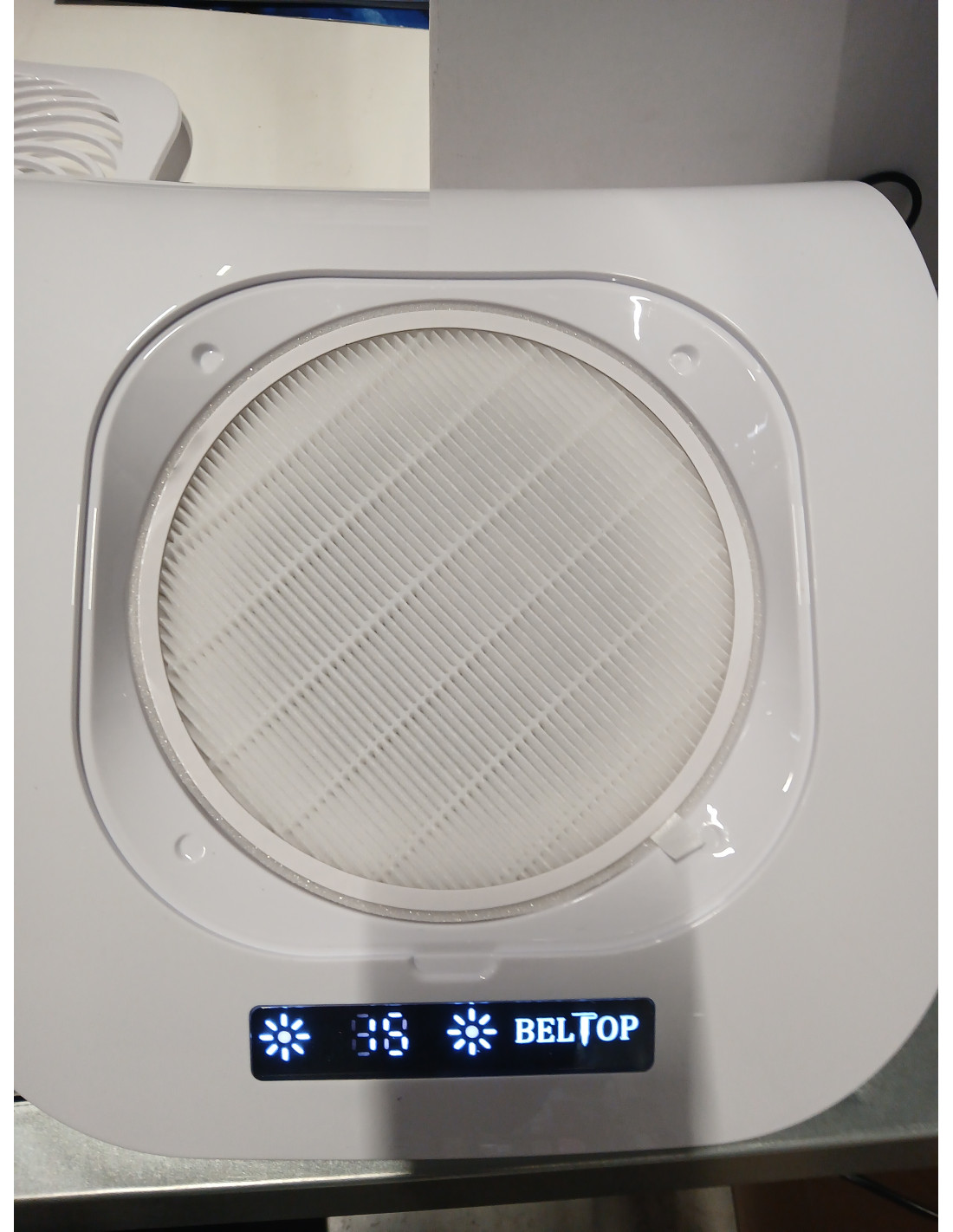 Urządzenie wyposażone jest turbinę ssącą o bardzo dużej wydajności dzięki temu pył z paznokci trafia bezpośrednio do specjalnego filtra, który uniemożliwia wydostanie się go na zewnątrz. Pochłaniacz posiada wyświetlacz oraz płynną regulację siły ssącej poprzez potencjometr umieszczony w bocznej części pochłaniacza. Dzięki temu lepiej ustawisz moc pochłaniacza do danego zabiegu. Kasetowy filtr do pyłu wykonany jest ze specjalnej bibuły filtracyjnej.