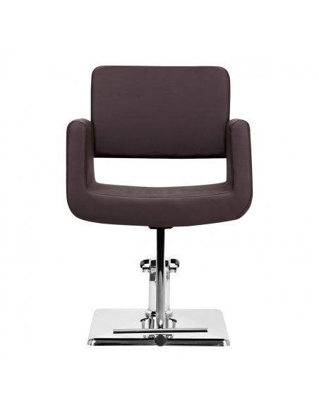 Nowoczesny fotel fryzjerski o wyjątkowym designie. Bardzo wygodny, idealnie pasujący do nowoczesnych salonów. Kolor beżowy. Specjalnie wyprofilowany, by zapewnić klientowi wygodną pozycję podczas zabiegu. Regulowany w płaszczyźnie pionowej. Bardzo stabilny i solidny. Obicie z wysokiej jakości ekoskóry. Kolor brązowy.