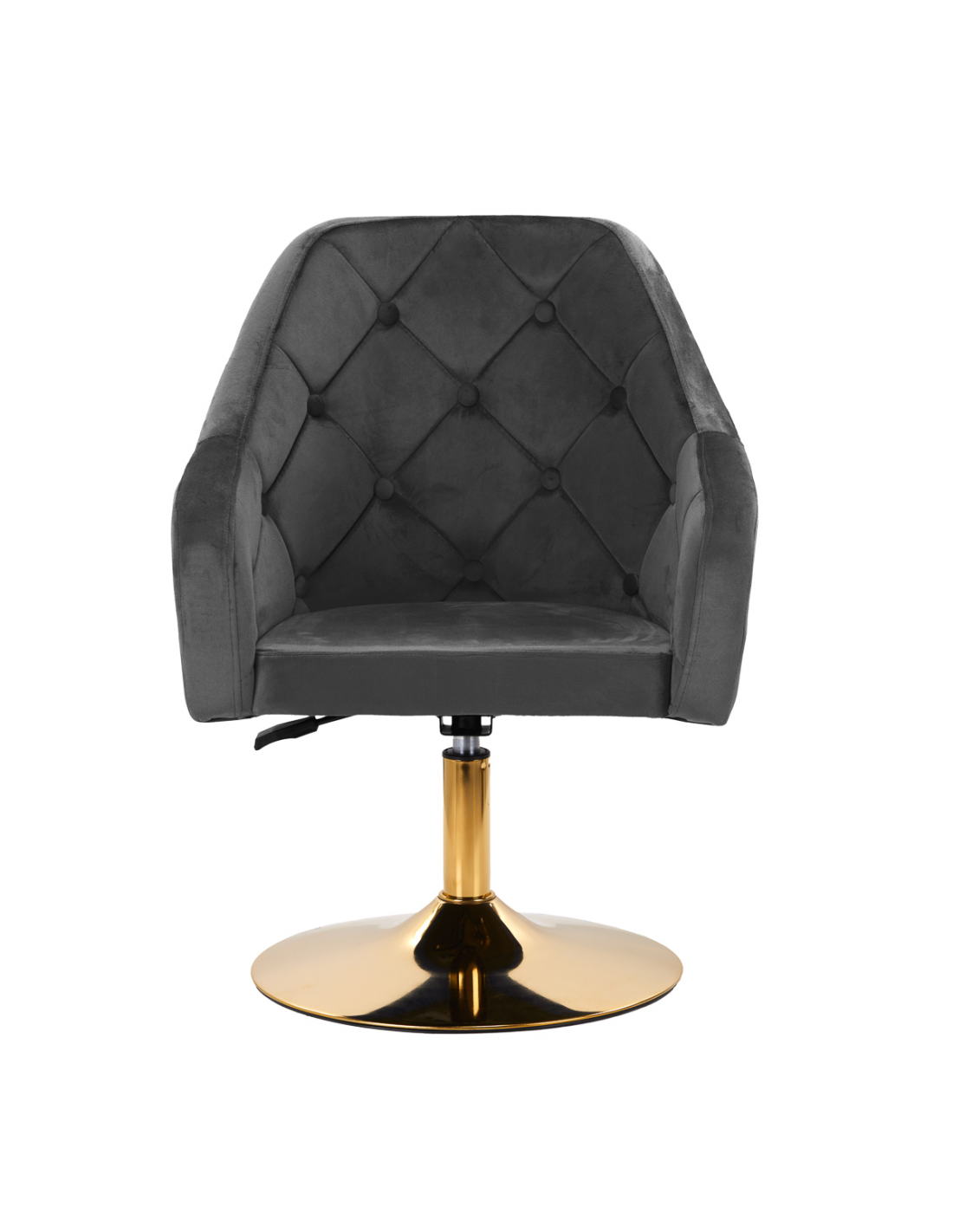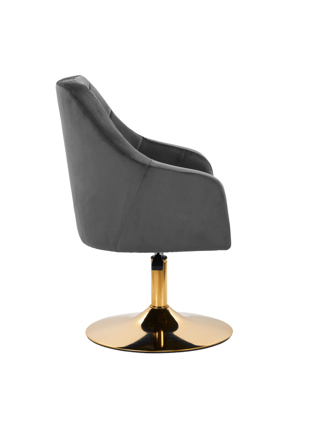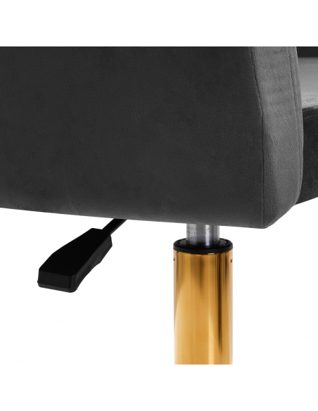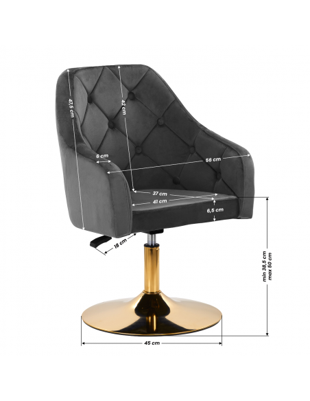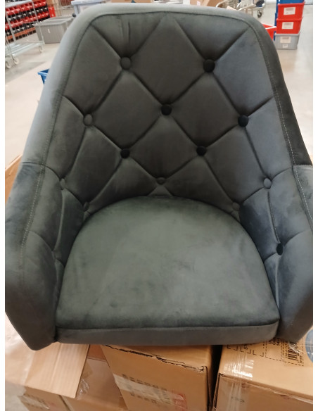 Ciekawy design nadaje krzesłu wyjątkowego charakteru. Przyjemne w dotyku, welwetowe obicie w odcieniach szarości wraz z ozdobnym pikowaniem sprawiają, że będzie ozdobą każdego wnętrza. Stabilna, okrągła podstawa w odcieniach złota dodaje elegancji, idealnie komponując się z welwetem. Estetyka wykonania, komfortowo osadzone podłokietniki, ergonomicznie wyprofilowane oparcie i estetyczne pikowanie sprawiają, że krzesło spełni wymagania nawet najbardziej wymagających użytkowników.