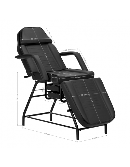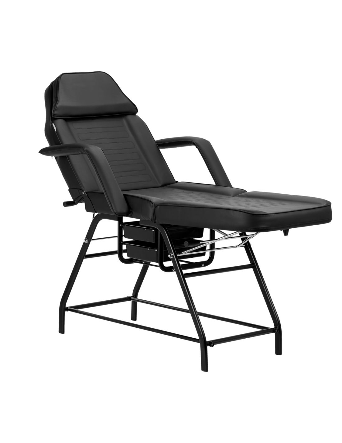 Przy pomocy dźwigni na sprężynach możliwa jest stopniowa regulacja kątów, pod którymi znajdują się podnóżek i oparcie. Pozwala to na optymalne ustawienie do indywidualnych potrzeb, dla prawidłowego i wygodnego wykonywania zabiegów oraz komfortu użytkowania. Fotel można rozłożyć aż do pozycji leżanki, co znacząco zwiększa jego funkcjonalność.