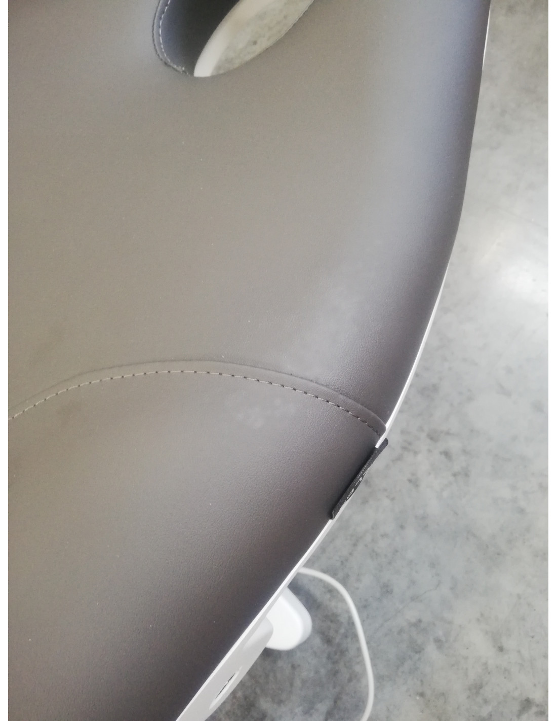 Odpowiedni sposób wyprofilowania nadaje fotelowi ergonomiczny kształt i umożliwia wygodne ułożenie w nim ciała. Sprzęt można rozłożyć do pozycji leżanki, a dzięki ukrytemu pod poduszką otworowi w zagłówku doskonale sprawdzi się także przy zabiegach na ciało, plecy czy podczas masaży. Stabilne podłokietniki z kolei stanowią komfortowe oparcie dla rąk w trakcie zabiegów. Możliwość przełożenia ich do tyłu ułatwia zajmowanie miejsca na siedzisku.