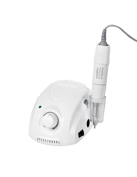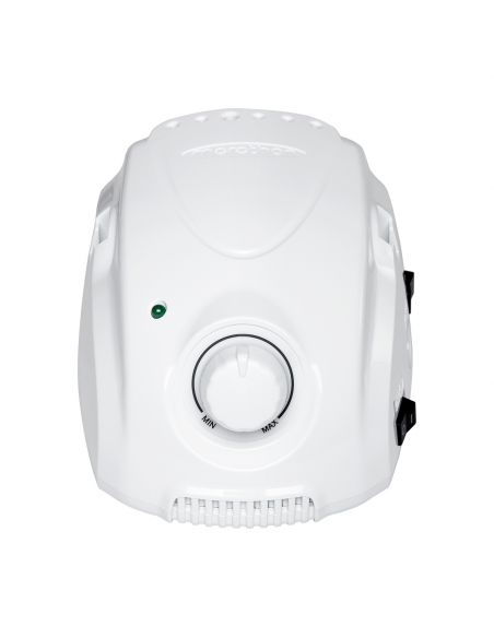 Regulacja prędkości przy użyciu pokrętła jest możliwa do 35 000 obrotów na minutę, co pozwala na dostosowanie do indywidualnych potrzeb, a co za tym idzie komfortowe wykonywanie szerokiej gamy zabiegów. Dodatkowo dioda kontrolna świeci w kolorze zielonym, ułatwiając rozpoznanie, czy frezarka pracuje na minimalnych obrotach. Praca z urządzeniem jest wyjątkowo łatwa, efektywna oraz intuicyjna, co zostanie docenione również przez bardziej wymagających użytkowników.