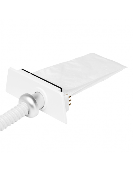 W zestawie znajduje się 5 dedykowanych wydajnych worków filtrujących. Zapewniają one bezpieczną oraz długotrwałą pracę urządzenia, wychwytując i zatrzymując pył oraz wszelkie drobiny materiału uwolnionego w trakcie zabiegów podologicznych. Gdy worek wymaga wymiany, na wyświetlaczu urządzenia pojawia się adekwatna ikonka.