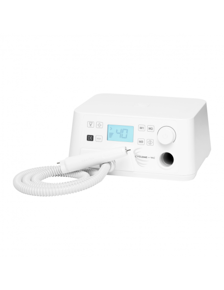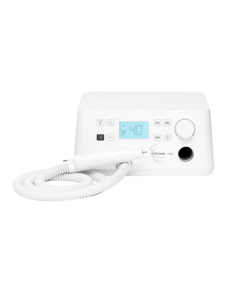 Wysokiej klasy frezarka podologiczna z pochłaniaczem Saeyang Marathon Cyclone-Vac to specjalistyczne urządzenie, które pozwala zachować wysokie standardy higieniczne w gabinecie, efektywnie chroniąc zdrowie osób wykonujących usługi oraz klientów. Profesjonalna frezarka przeznaczona jest do pedicure, zwłaszcza zabiegów leczniczych na sucho przeprowadzanych w podologii, ale sprawdzi się również w trakcie manicure. Wydajna głowica z pochłaniaczem oraz intuicyjna obsługa znacząco usprawniają pracę podologa, ułatwiając wykonywanie szerokiej gamy zabiegów.