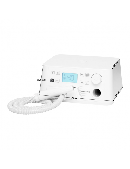 Odpowiednia ochrona płuc jest kluczem do odpowiedzialnej i bezpiecznej pracy podologa oraz zachowania wysokich standardów higienicznych w gabinecie. Duża moc ssania urządzenia sprawia, że doskonale pochłania ono wszelkie powstałe w trakcie zabiegów pyły. Możliwa jest również regulacja pochłaniania na pięciu poziomach oraz w razie potrzeby wyłączenie tej funkcji.