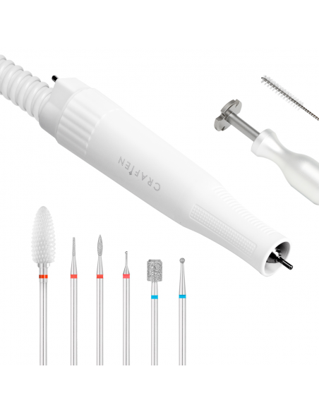 Znajdujące się w zestawie praktyczne akcesoria skutecznie ułatwiają pracę. Precyzyjna głowica z pochłaniaczem oraz zapasowe worki filtrujące zapewniają bezpieczne użytkowanie, chroniąc przed wdychaniem szkodliwych patogenów. W zestawie znajduje się również komplet frezów, który pozwoli na komfortowe wykonywanie różnorodnych zabiegów w zakresie pedicure oraz podstawka wykonana ze specjalnego tworzywa, co ułatwia jej czyszczenie. Różnorodne kształty, materiały oraz gradacje frezów pozwalają dobrać odpowiednie narzędzie do wykonywanej w danym momencie usługi i opracowywanego miejsca. Dołączone narzędzia do czyszczenia głowicy zapewniają łatwość utrzymania urządzenia w dobrym stanie, ułatwiając korzystanie.