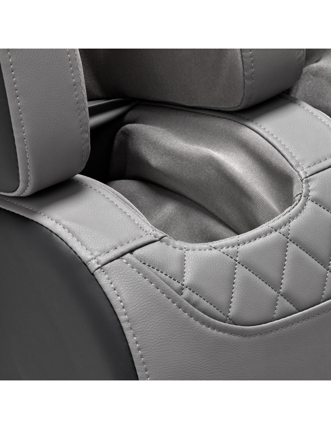 Wygodne wnętrze fotela pokryte jest przyjemną w dotyku imitacją skóry w odcieniach szarości. Zastosowanie takiego materiału sprawia, że jest wysoce odporny na wilgoć oraz łatwy w czyszczeniu. Imitacja skóry w odcieniach szarości na zewnętrznych częściach fotela sprawia, że produkt prezentuje się niezwykle oryginalnie, a zarazem elegancko. Starannie wykonane obszycia nadają mu stylowy wygląd, a solidna konstrukcja gwarantuje długie użytkowanie. Kompaktowy model o estetycznym wykończeniu i klasycznej kolorystyce świetnie wpasuje się w każde wnętrze. Fotel masujący Sakura Classic 305 to doskonały sposób na relaks w dowolnej chwili, zwłaszcza po wyczerpującym dniu lub ciężkim treningu.