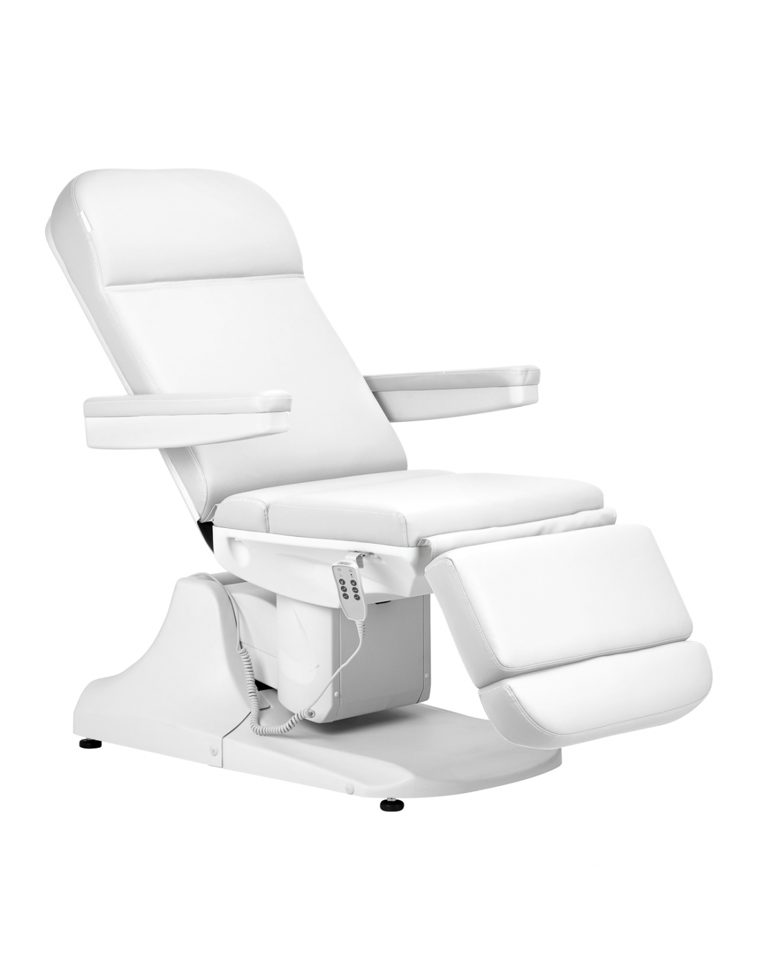 Używając prostego, intuicyjnego pilota, fotel można w płynny sposób dostosowywać w trzech płaszczyznach – posiada regulację wysokości siedziska oraz kątów nachylenia oparcia i podnóżka. Umożliwia to swobodne ustawianie pozycji odpowiednio do zabiegu wykonywanego w danym momencie, co wpływa zarówno na komfort użytkownika, jak i osoby wykonującej usługi. Wymiary oraz szerokość regulacji pozwalają na łatwe korzystanie ze sprzętu osobom o różnym wzroście i ułatwiają dostosowanie go do potrzeb zarówno klienta, jak i osoby wykonującej zabieg.