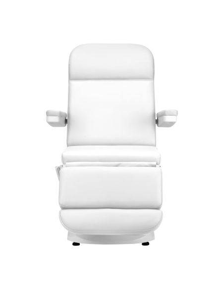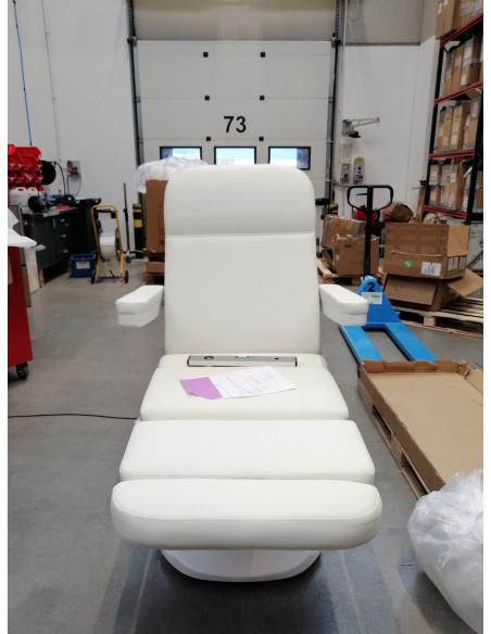 Szerokie siedzisko zapewnia wygodę w trakcie długich zabiegów. Podłokietniki są ruchome, można je ustawić w pozycji pionowej lub przełożyć o 180º, dzięki czemu ułatwiają sprawne zajęcie miejsca na fotelu i zapewniają komfortowy dostęp osobie wykonującej zabieg. W razie potrzeby możliwy jest ich łatwy i szybki demontaż.