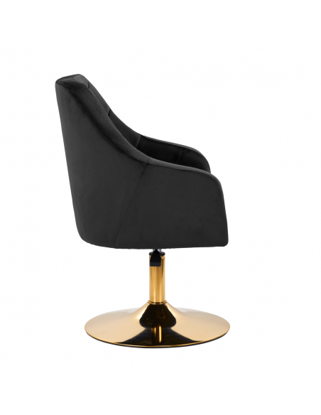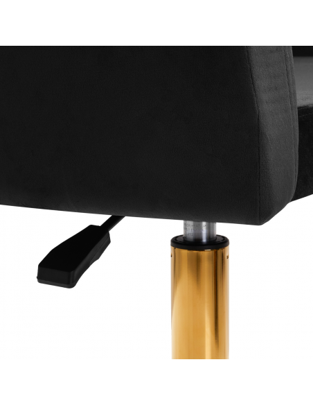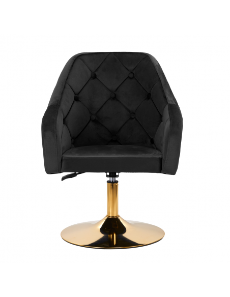 Ciekawy design nadaje krzesłu wyjątkowego charakteru. Przyjemne w dotyku, welwetowe obicie w odcieniach czerni wraz z ozdobnym pikowaniem sprawiają, że będzie ozdobą każdego wnętrza. Stabilna, okrągła podstawa w odcieniach złota dodaje elegancji, idealnie komponując się z welwetem. Estetyka wykonania, komfortowo osadzone podłokietniki, ergonomicznie wyprofilowane oparcie i estetyczne pikowanie sprawiają, że krzesło spełni wymagania nawet najbardziej wymagających użytkowników.