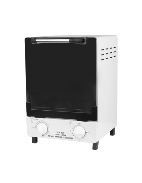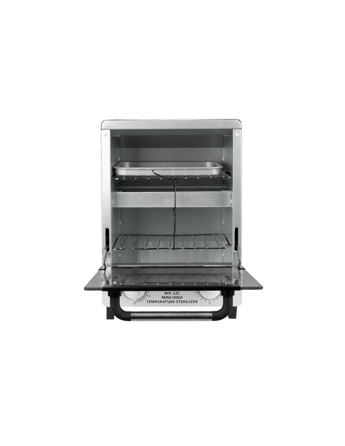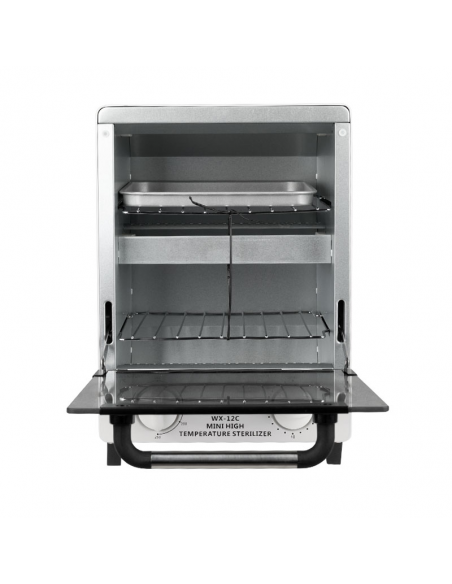 Wysokotemperaturowy sterylizator WX-12C został zaprojektowany do dezynfekcji narzędzi. Wewnętrzne boki urządzenia wykonane jest ze stali , wewnątrz znajduje wyjmowany pojemnik do przechowywania i sterylizacji narzędzi. Sucha sterylizacja gorącym powietrzem zabija bakterie bez wilgoci i nie tępi narzędzi.