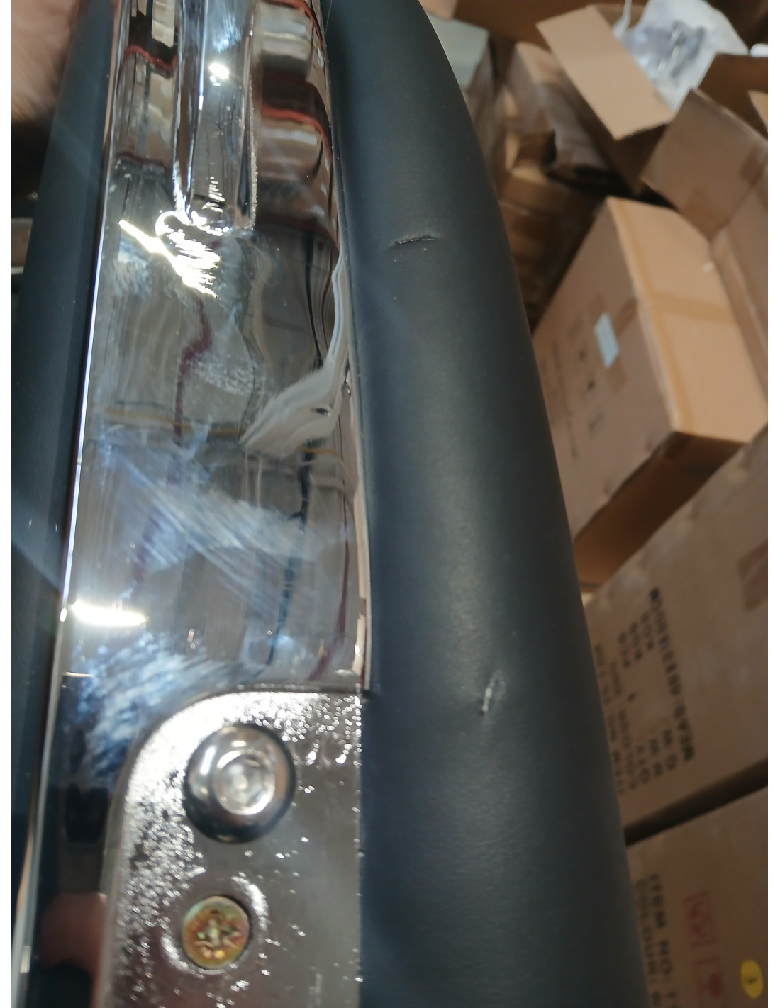 Produkt po zwrocie, lekkie ryski na podnóżku oraz lekkie odbarwienia na tapicerce, lekkie rozcięcie tapicerki z boku oparcia - MGA3919