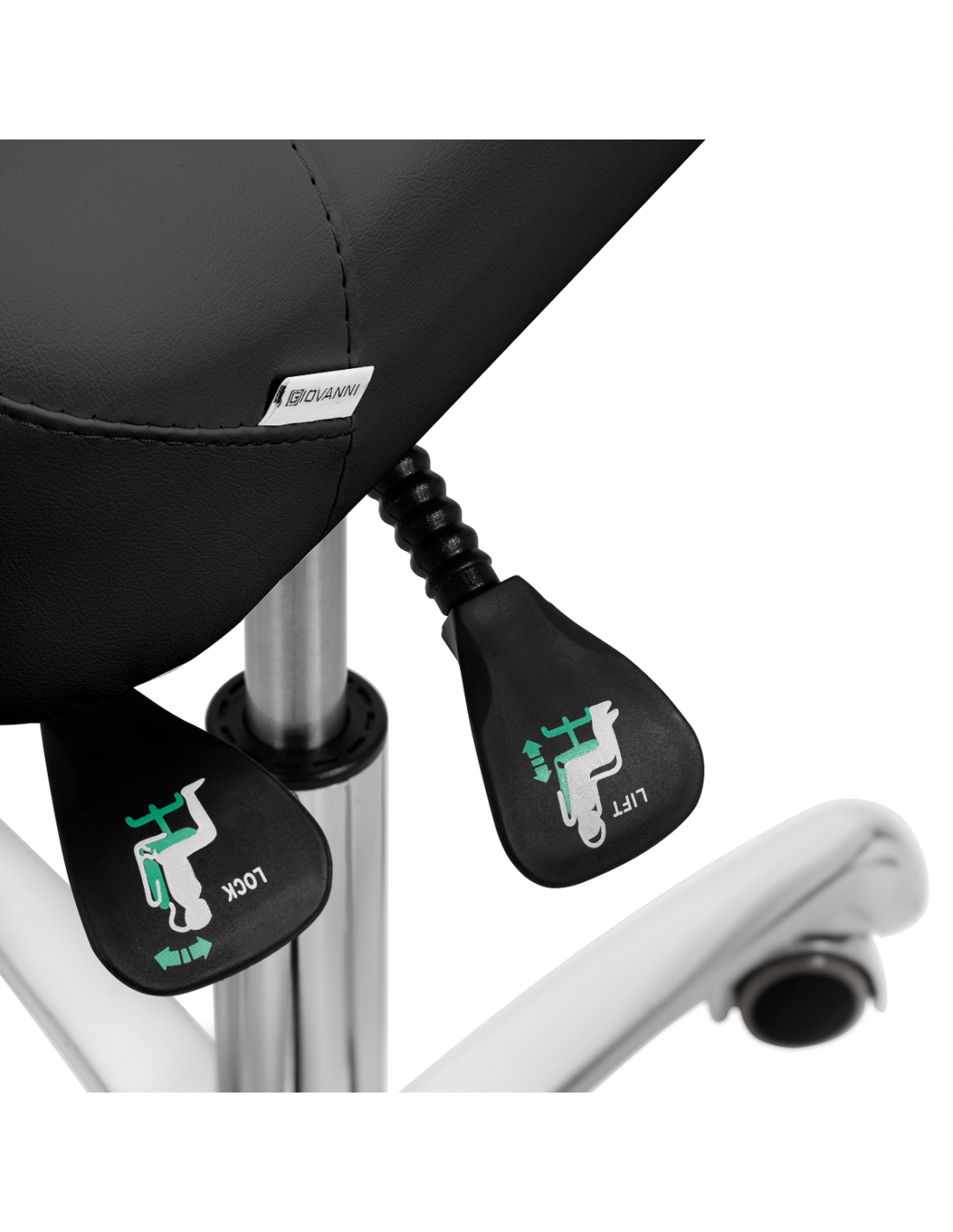 Taboret podologiczny Giovanni 1005 o unikalnym kształcie i ergonomicznym oparciu świetnie sprawdzi się w profesjonalnych gabinetach. Innowacyjna konstrukcja oparcia zapewnia wygodę podczas wykonywania zabiegów w różnych pozycjach, dbając o komfort zarówno klienta, jak i osoby wykonującej usługę, co czyni go idealnym wyborem do codziennej pracy.