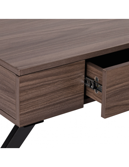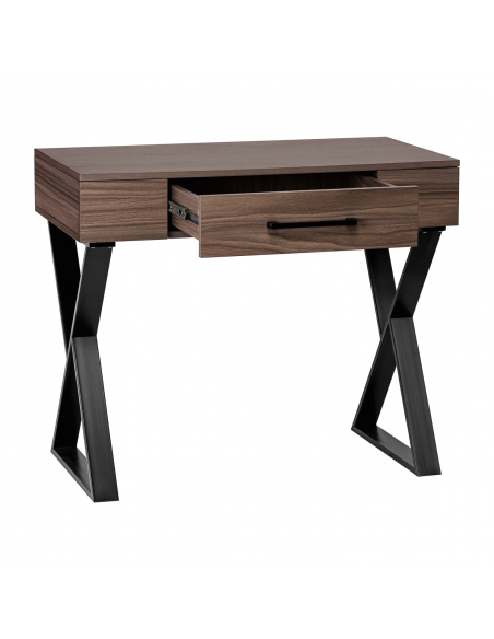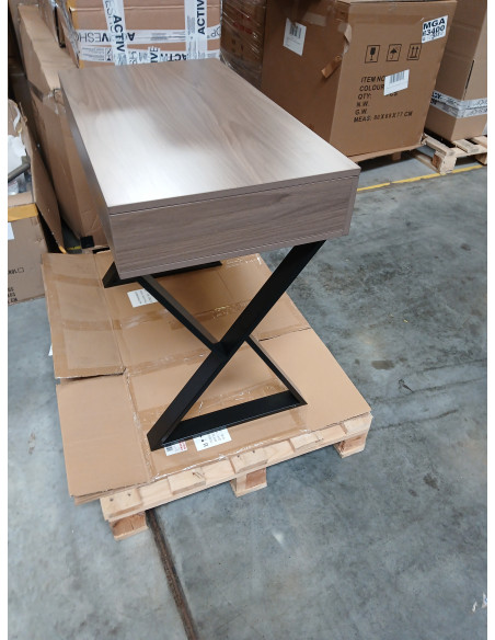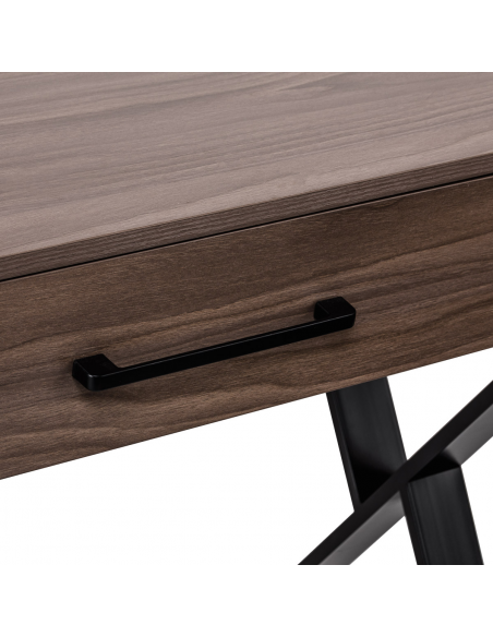 Metalowe nogi w kształcie litery X o matowym wykończeniu tworzą solidne podparcie, a jednocześnie nadają konstrukcji lekkości i nowoczesnego wyrazu. Blat w odcieniach ciemnego drewna pięknie kontrastuje z czarną podstawą, podkreślając industrialny styl. Konsola fryzjerska Gabbiano to przemyślany wybór dla stylistów, którzy cenią połączenie designu i komfortu użytkowania. Idealny wybór do salonów stawiających na nowoczesny wystrój i komfort pracy.