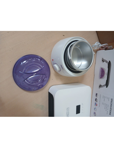 W zestawie: podgrzewacz, przewód zasilający, wiaderko do podgrzewania wosku twardego, instrukcja.