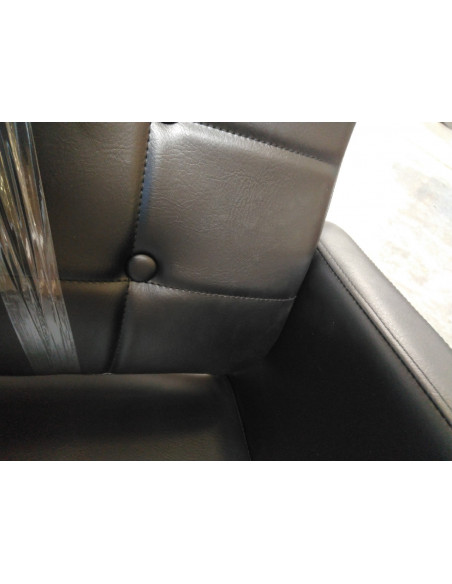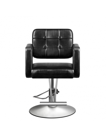 Klasyczny fotel fryzjerski marki HAIR SYSTEM. Elegancki i bardzo wygodny.  Solidna, chromowana podstawa gwarantuje utrzymanie stabilności siedziska.  Obicie wykonane z wysokiej jakości czarnej ekoskóry. Fotel posiada regulację góra-dół.