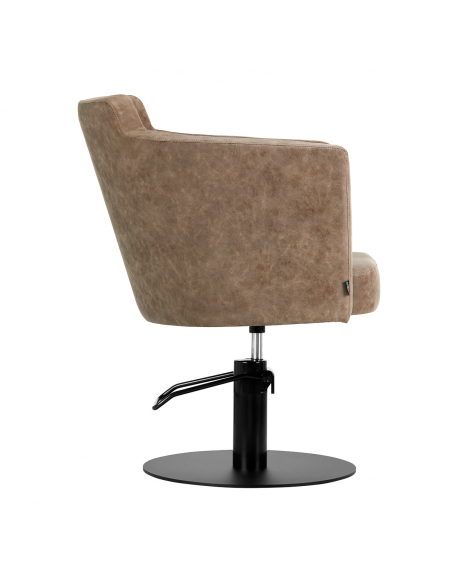 Solidna, płaska podstawa w kształcie koła gwarantuje stabilność w trakcie użytkowania. Matowo wykończona, gładka powierzchnia nadaje elementowi elegancki wygląd i sprawia, że ten jest łatwy do utrzymania w czystości. Wyposażenie fotela w mechanizm pełnego obrotu sprawia, że praca fryzjera staje się bardziej efektywna i wygodna. Wygodne siedzisko z wypełnieniem z pianki zapewnia wysoki komfort użytkowania, nawet podczas wielogodzinnych zabiegów. Podłokietniki pozwalają na prawidłowe ułożenie barków klienta – sprawia to, że nie chowa głowy w ramionach ani się nie garbi – wyraźnie ułatwiając wykonywanie precyzyjnych zabiegów, w tym strzyżenia.