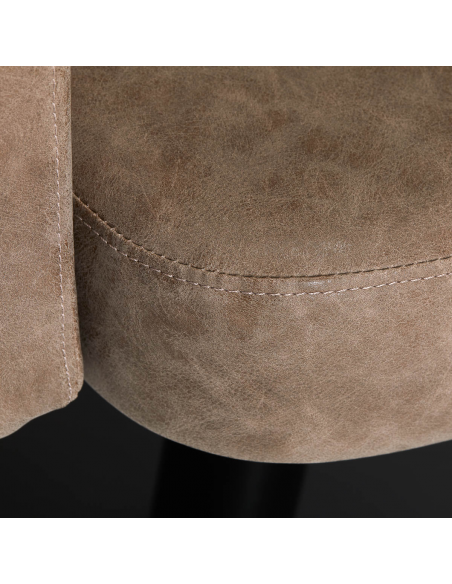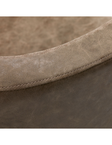 Funkcjonalny mebel wypełniony jest trwałą, odporną na odkształcenia pianką, z kolei obicie wykonane zostało z przyjemnej w dotyku skóry syntetycznej. Zastosowane materiały zapewniają trwałość mebla oraz jego komfortowe użytkowanie przez długi czas i sprawiają, że sprzęt jest odporny na wilgoć, wytrzymały oraz łatwy do czyszczenia. Pokrycie w odcieniach brązu wraz z podstawą w odcieniach czerni nadają mu wyjątkowego charakteru. Sprzęt wyróżnia minimalistyczny design, który sprawia, że fotel będzie doskonale prezentować się w wielu salonach.