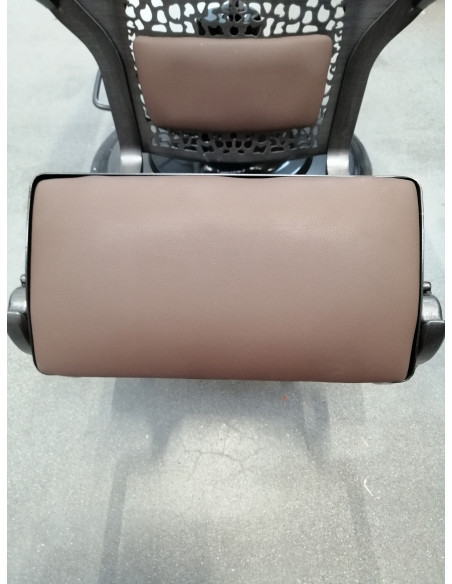 Komfortowe siedzisko wypełnione pianką gwarantuje klientowi wygodę w trakcie różnorodnych usług. Wyprofilowane oparcie pozwala na zajęcie dogodnej pozycji, zapewniając doskonałe wsparcie pleców, co jest istotne szczególnie podczas dłuższych zabiegów. Wyposażenie fotela w mechanizm pełnego obrotu sprawia, że praca staje się bardziej efektywna i wygodna. Tapicerowane podłokietniki umieszczone na odpowiedniej wysokości umożliwiają prawidłowe ułożenie barków klienta – sprawia to, że nie chowa głowy w ramionach ani się nie garbi – znacząco ułatwiając wykonywanie precyzyjnych zabiegów. Uchwyt na ręcznik pod podłokietnikiem znacznie wpływa na efektywność pracy. Otwór pomiędzy oparciem a siedziskiem ułatwia zachowanie czystości w salonie, pozwalając w łatwy sposób wymieść włosy z każdego zakamarka fotela. Usprawnia to przygotowanie stanowiska pracy pomiędzy klientami.