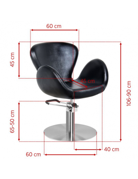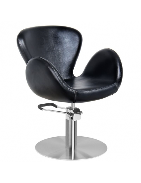 Nowoczesny fotel fryzjerski o wyjątkowym designie. Bardzo wygodny, idealnie pasujący do nowoczesnych salonów. Kolor beżowy. Specjalnie wyprofilowany, by zapewnić klientowi wygodną pozycję podczas zabiegu. Regulowany w płaszczyźnie pionowej. Bardzo stabilny i solidny. Obicie z wysokiej jakości ekoskóry. Kolor czarny.