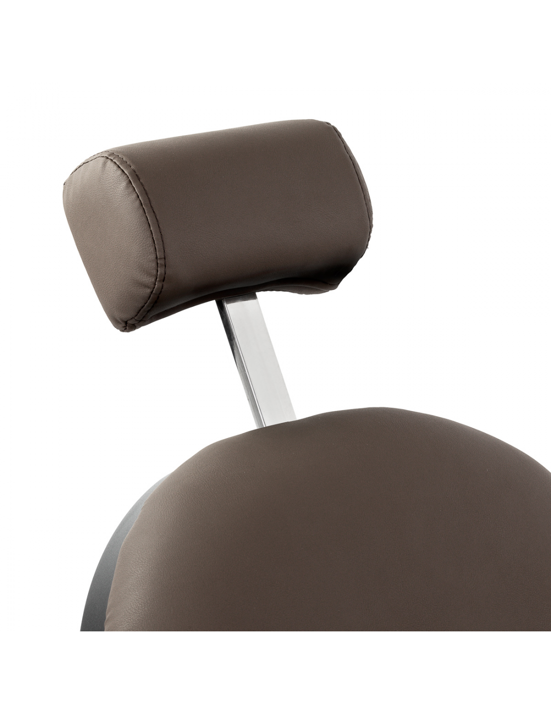 Trwały podnośnik hydrauliczny pozwala na swobodną regulację wysokości siedziska w granicach 56-70 cm, nawet w momencie, gdy klient siedzi na fotelu. Gwarantuje to ergonomię pracy oraz zapewnia możliwość dopasowania poziomu siedziska do wzrostu zarówno klienta, jak i osoby wykonującej zabieg. Fotel posiada odchylane oparcie oraz regulowany podnóżek, dzięki czemu możliwe jest ułożenie klienta w dogodnej, półleżącej pozycji. Takie ustawienie gwarantuje lepszy dostęp podczas niektórych usług. Dodatkowo wysuwany o 20 cm zagłówek zapewnia doskonałe podparcie głowy, dzięki możliwości dopasowania do indywidualnych potrzeb.