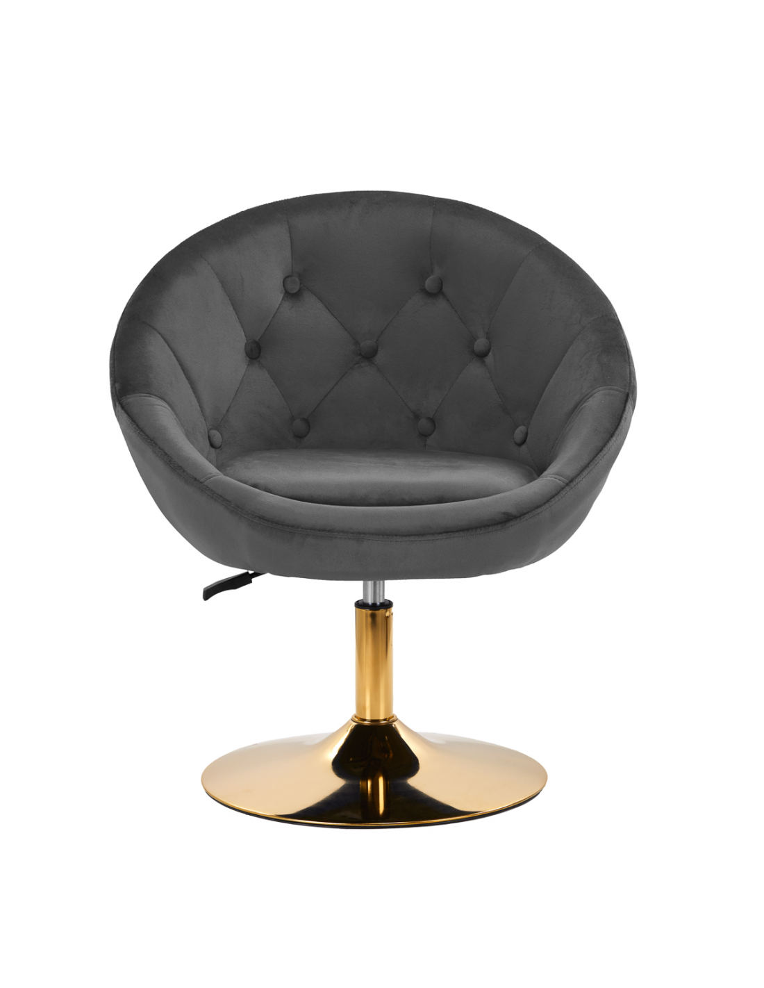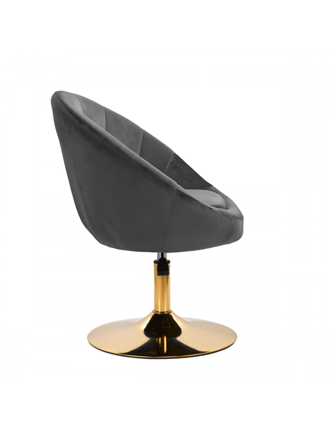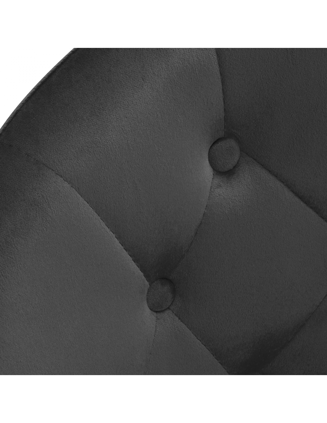 Luksusowe wykończenie sprawia, że mebel wpada w oko. Przyjemne w dotyku, welwetowe obicie w odcieniach szarości wraz z ozdobnym pikowaniem nadają mu wyjątkowego charakteru. Stabilna, okrągła podstawa w odcieniach złota dodaje elegancji, idealnie komponując się z welwetem. Estetyka wykonania, komfort użytkowania, ergonomicznie wyprofilowane oparcie i estetyczne pikowanie sprawiają, że krzesło spełni wymagania nawet najbardziej wymagających użytkowników.