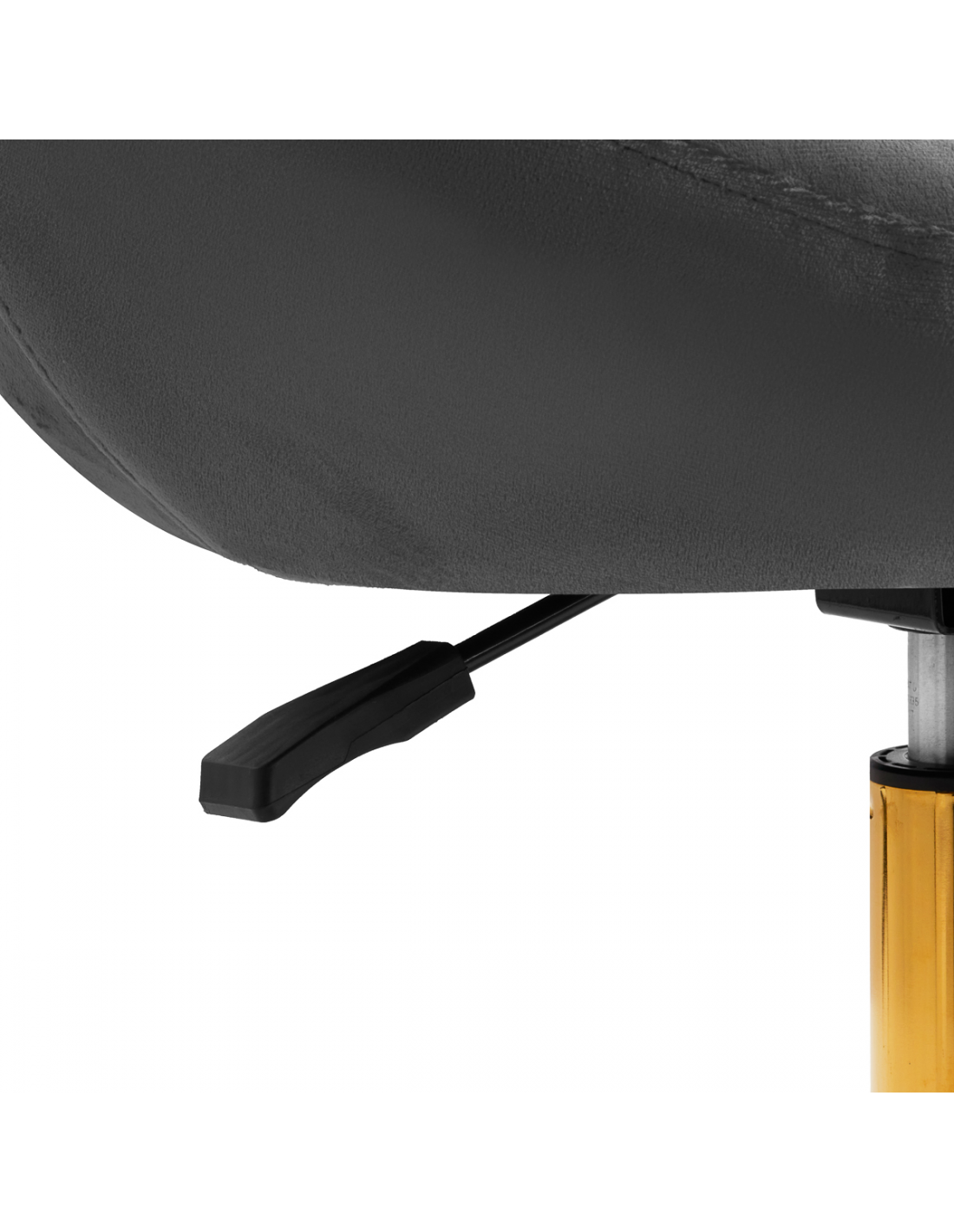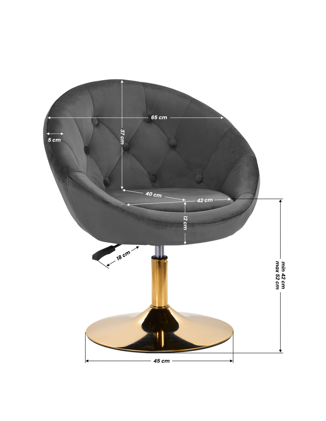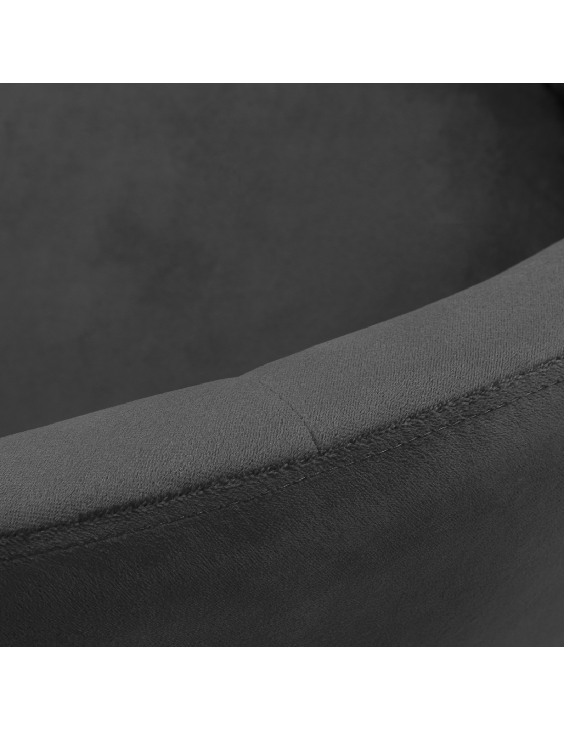 Luksusowe wykończenie sprawia, że mebel wpada w oko. Przyjemne w dotyku, welwetowe obicie w odcieniach szarości wraz z ozdobnym pikowaniem nadają mu wyjątkowego charakteru. Stabilna, okrągła podstawa w odcieniach złota dodaje elegancji, idealnie komponując się z welwetem. Estetyka wykonania, komfort użytkowania, ergonomicznie wyprofilowane oparcie i estetyczne pikowanie sprawiają, że krzesło spełni wymagania nawet najbardziej wymagających użytkowników.