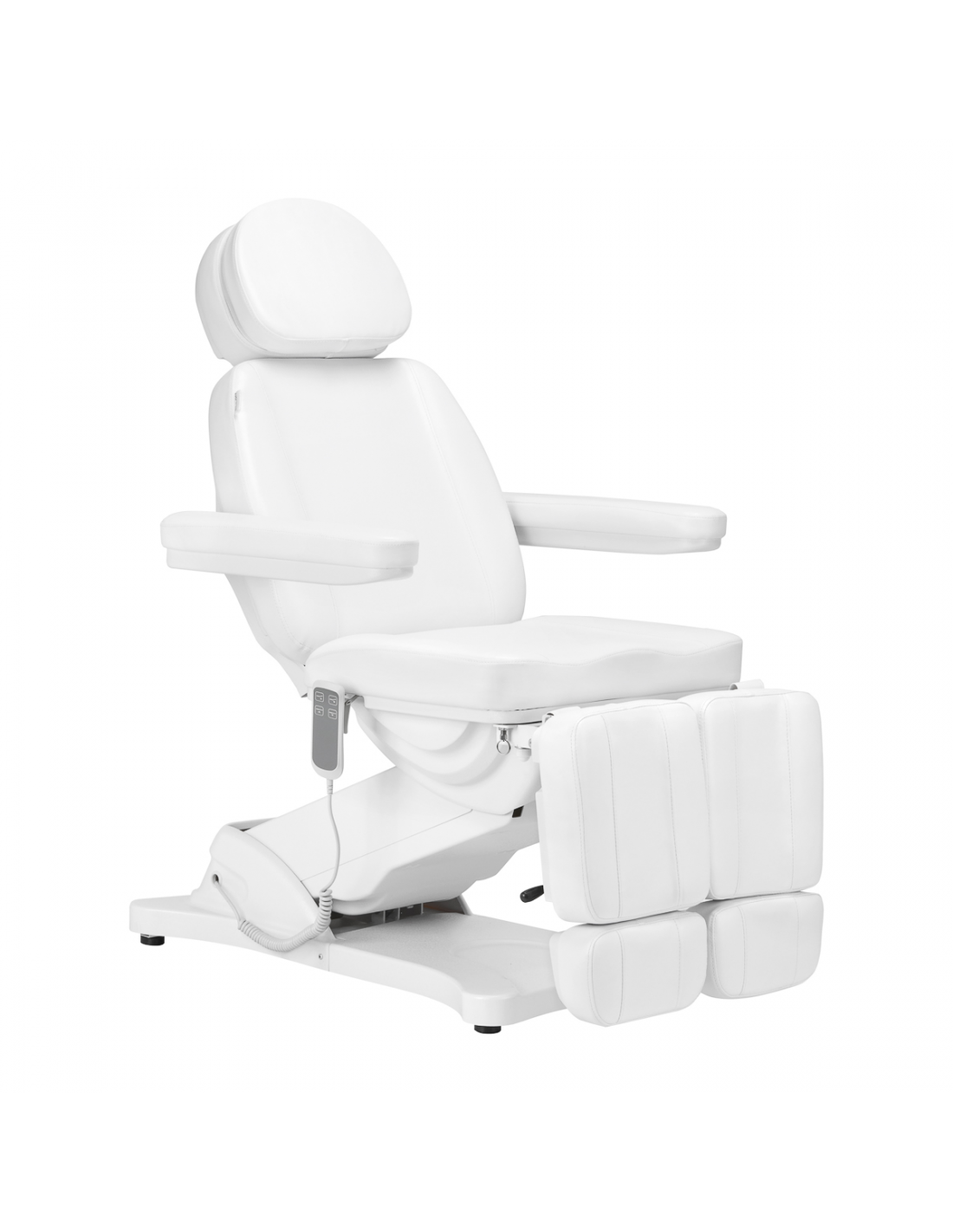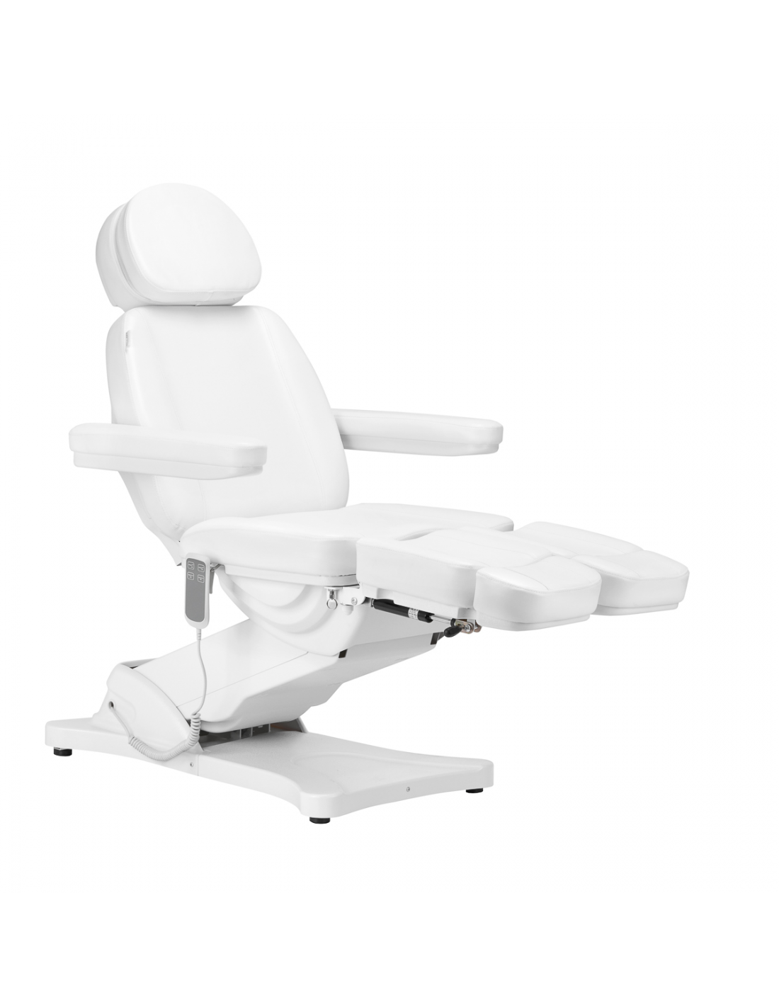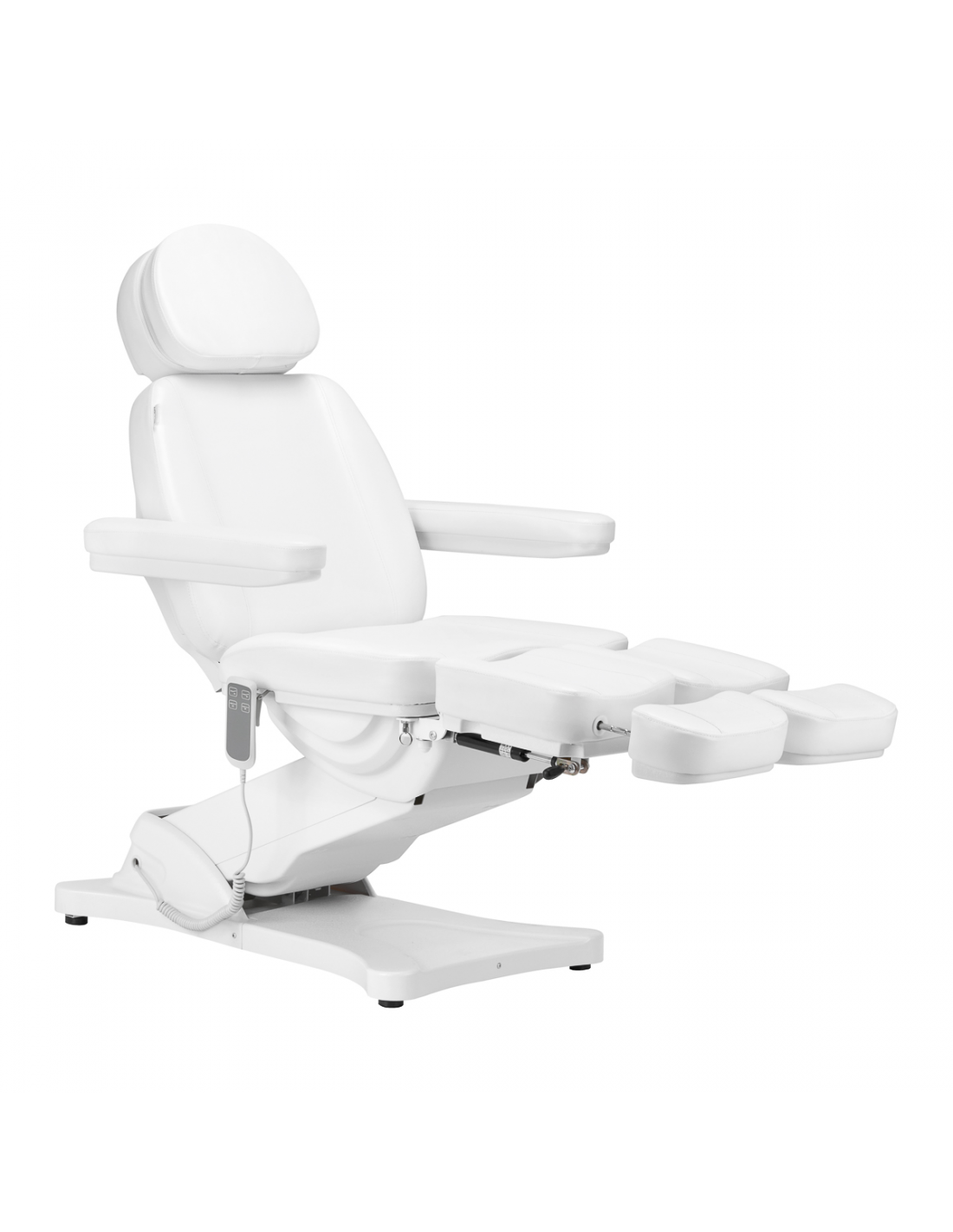Fotel doskonale przystosowany jest do wykonywania zabiegów podologicznych – dzielony podnóżek ułatwia komfortowe przeprowadzenie usług, pozwalając na niezależne układanie pozycji nóg. Kąty, pod jakimi znajdują się jego części, regulowane są manualnie. Specjalnie zaprojektowany mechanizm pozwala na odchylanie podnóżków również na boki. Wysunięcie podnóżka również można dostosowywać, co zapewni lepsze podparcie wyższym użytkownikom. Wszystkie te cechy zapewniają wysoki komfort korzystania.
