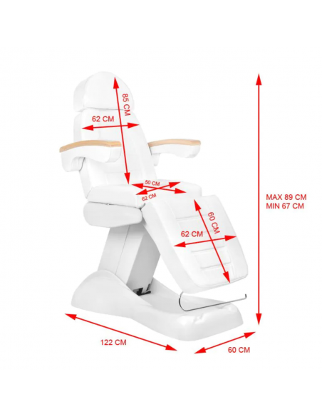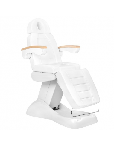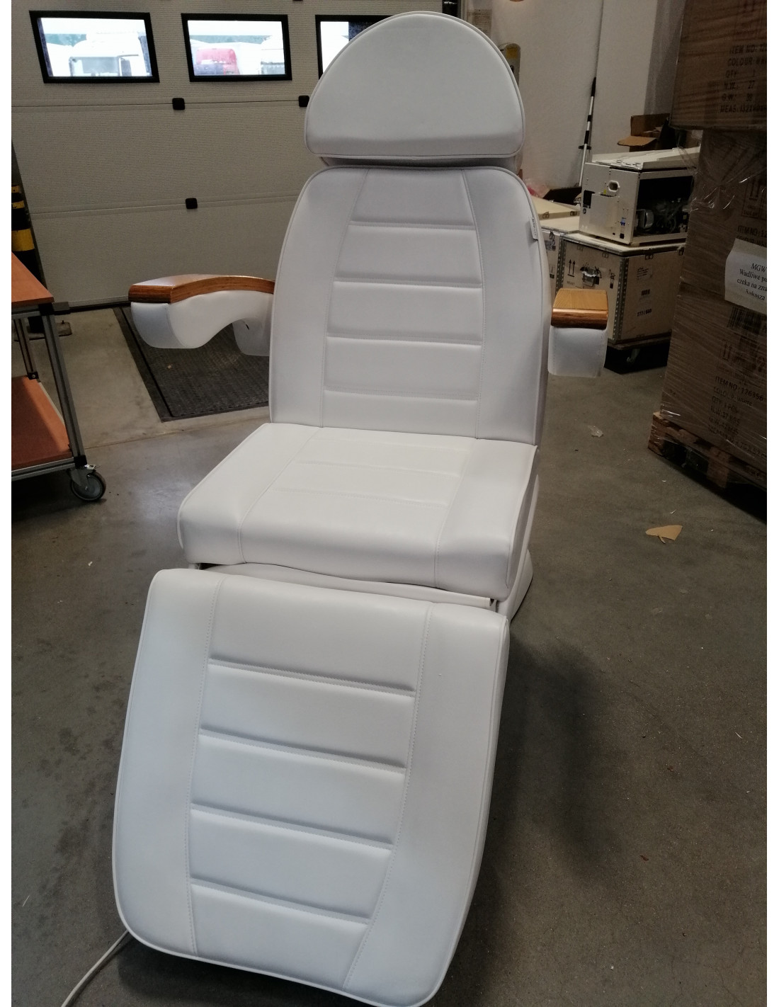 Fotel kosmetyczny, świetnie sprawdza się w gabinetach kosmetycznych i salonach SPA, doskonały do zabiegów kosmetycznych, wizażu i masażu. Posiada elektrycznie sterowane: