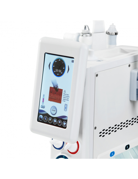 Praktyczny 7-calowy dotykowy panel zapewnia intuicyjną obsługę. Możliwość regulowania parametrów zabiegów oraz różnorodne opcje, takie jak wybór rodzaju, intensywności, czasu zabiegu czy trybu fali zabiegowej, pozwalają dostosować działanie urządzenia do konkretnych potrzeb klienta. Czytelny wyświetlacz umożliwia łatwe śledzenie postępu zabiegu, co znacząco podnosi komfort i efektywność korzystania z kombajnu.
