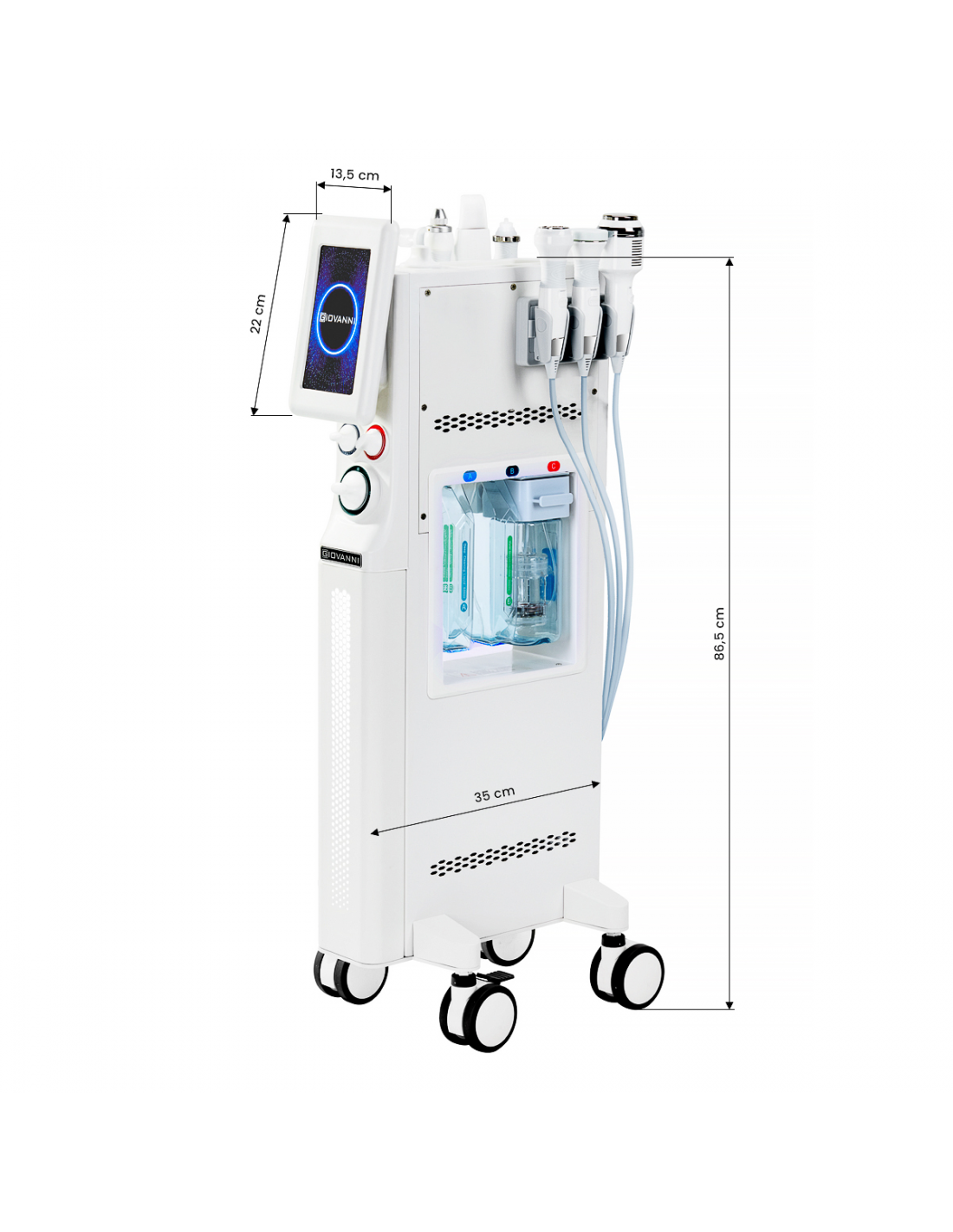 Giovanni 6w1 Ashe Super Bubble to zaawansowane urządzenie kosmetyczne, które oferuje wyjątkową wszechstronność w pielęgnacji twarzy. Specjalistycznie dobrane głowice oraz szerokie możliwości regulacji pozwalają na skoncentrowane działanie, co przynosi widoczne i trwałe rezultaty, a jednocześnie zapewnia kompleksową i spersonalizowaną pielęgnację. Kombajn nie tylko poszerza ofertę gabinetów kosmetycznych, ale również spełnia oczekiwania klientów, oferując różnorodność zabiegów dostosowanych do unikalnych potrzeb.