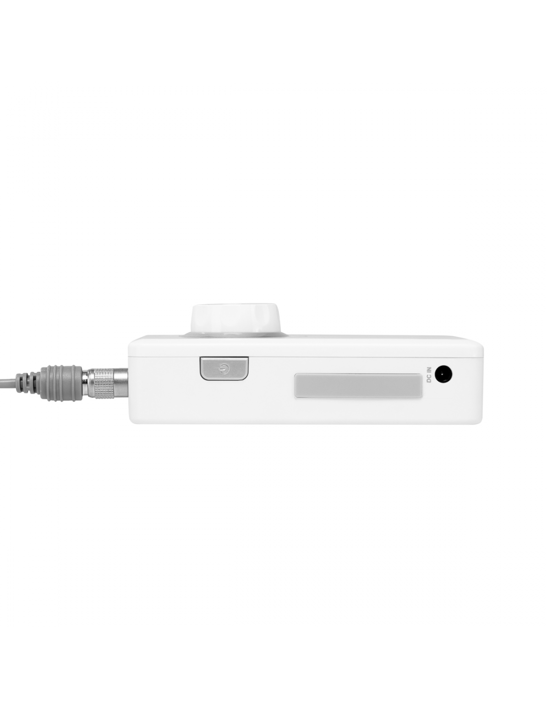 Minimalistyczna obudowa z tworzywa sztucznego w odcieniach bieli zapewnia trwałość oraz łatwość czyszczenia, a dodatkowo jest ciekawym wizualnie uzupełnieniem stanowiska pracy. Kompaktowe wymiary i lekka konstrukcja sprawiają, że frezarka doskonale sprawdza się zarówno na niewielkich stanowiskach pracy, jak i w trakcie transportu – szczególnie przydatne w przypadku usług mobilnych. Dla większej stabilności urządzenie zostało wyposażone w gumowane elementy na spodzie, które zapobiegają przesuwaniu się podczas użytkowania, gwarantując bezpieczną i komfortową pracę.