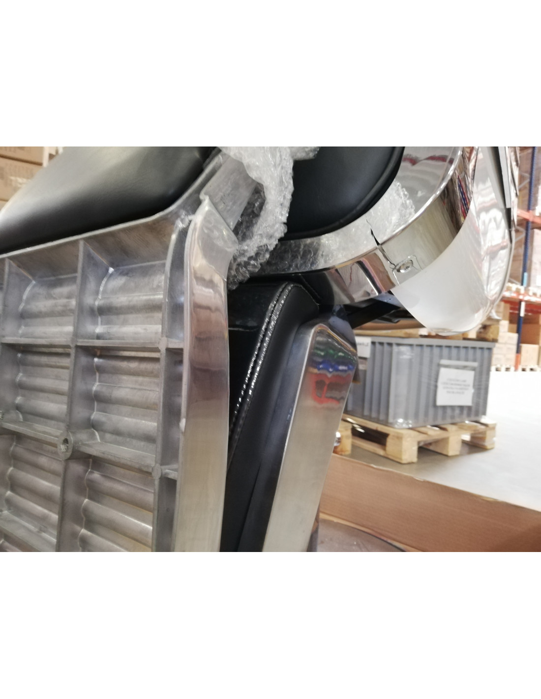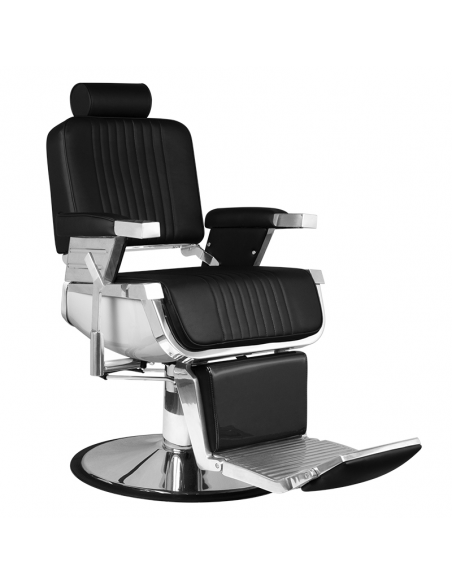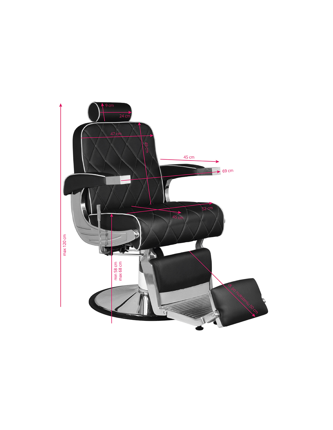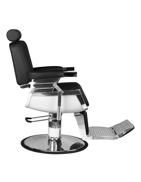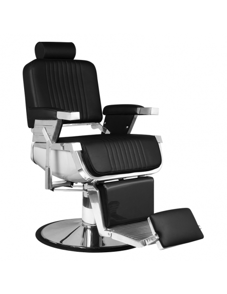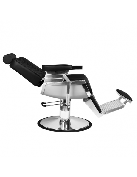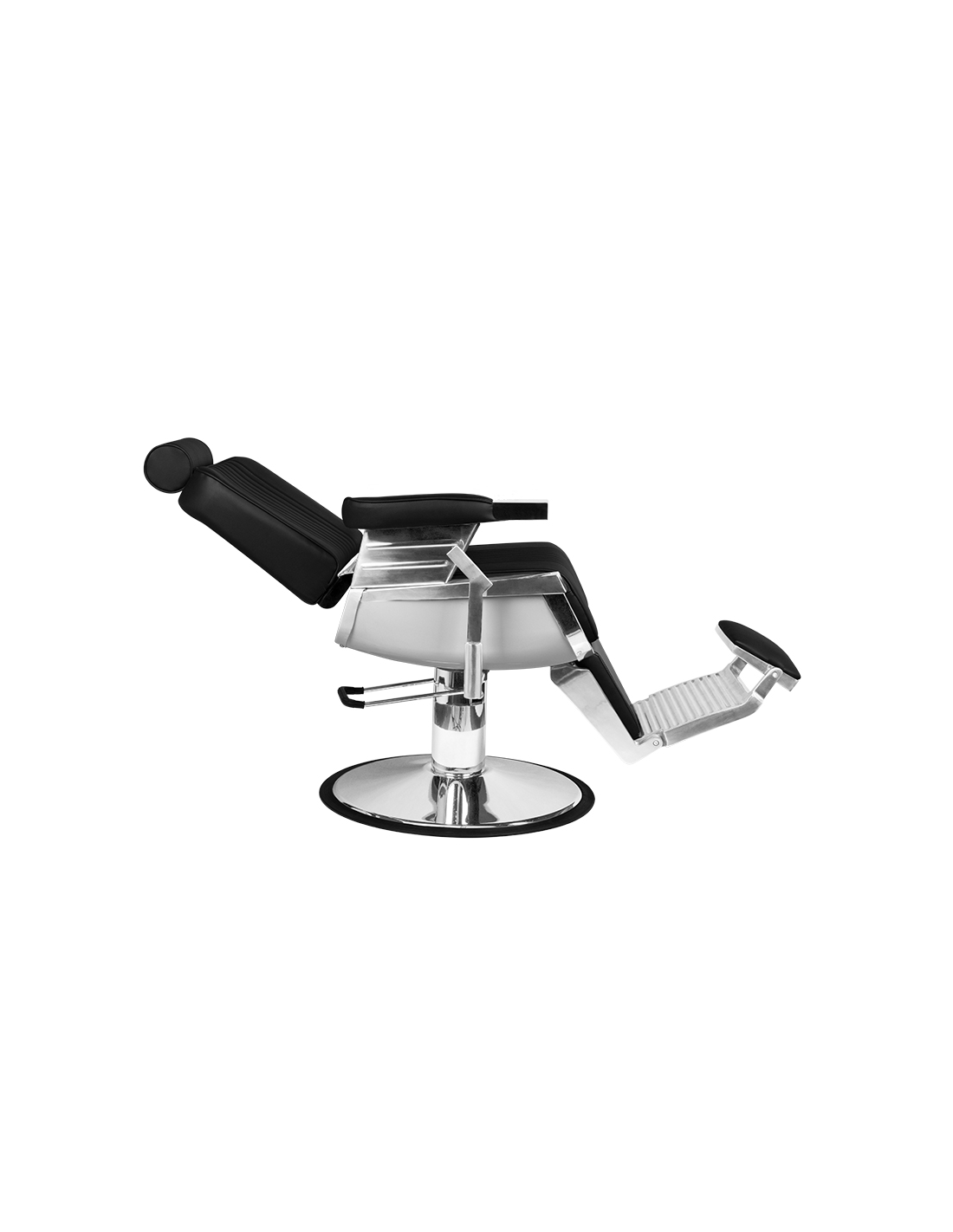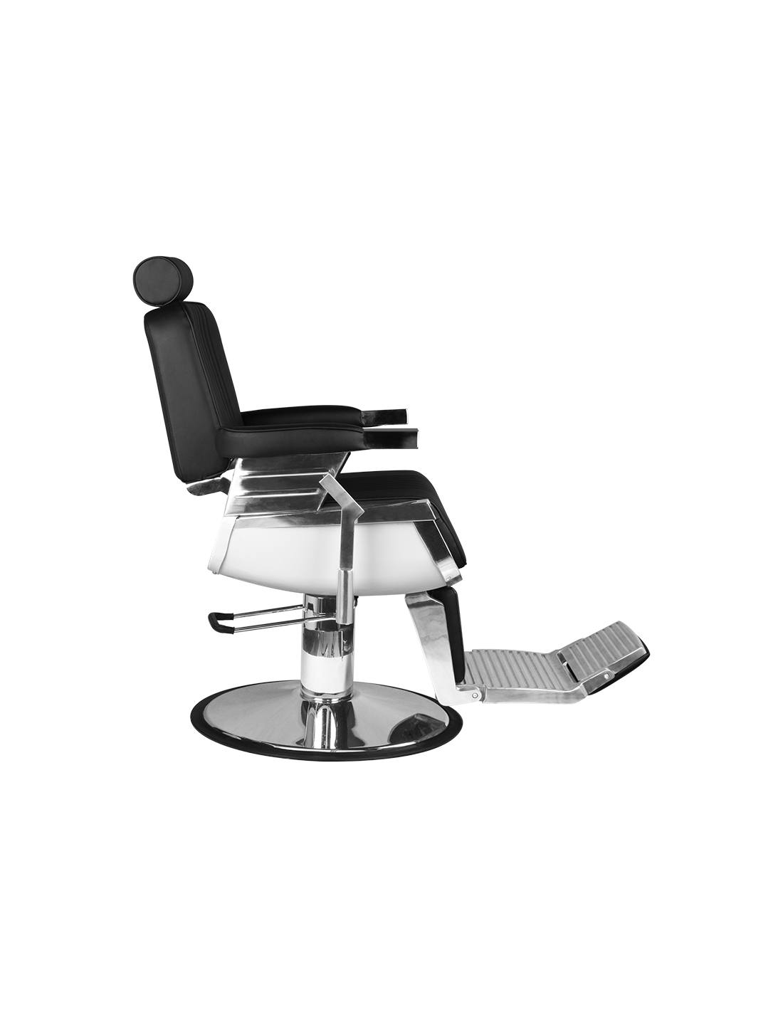 Podążając za tym trendem wprowadziliśmy do oferty nowy produkt -fotel barberski. To nowoczesny, doskonale wykończony mebel, dający klientowi salonu maksymalne uczucie komfortu podczas wykonywanych zabiegów. Poza regulacją góra-dół, fotel posiada odchylane oparcie oraz regulowany podnóżek. Mimo małych gabarytów, możliwe jest ustawienie klienta w dogodnej, półleżącej pozycji. Wygodne siedzisko pokryte jest wysokiej jakości ekoskórą. Szeroka, chromowana podstawa gwarantuje stabilność mebla podczas pracy. Dodatkową zaletą jest możliwość łatwej regulacji zagłówka.