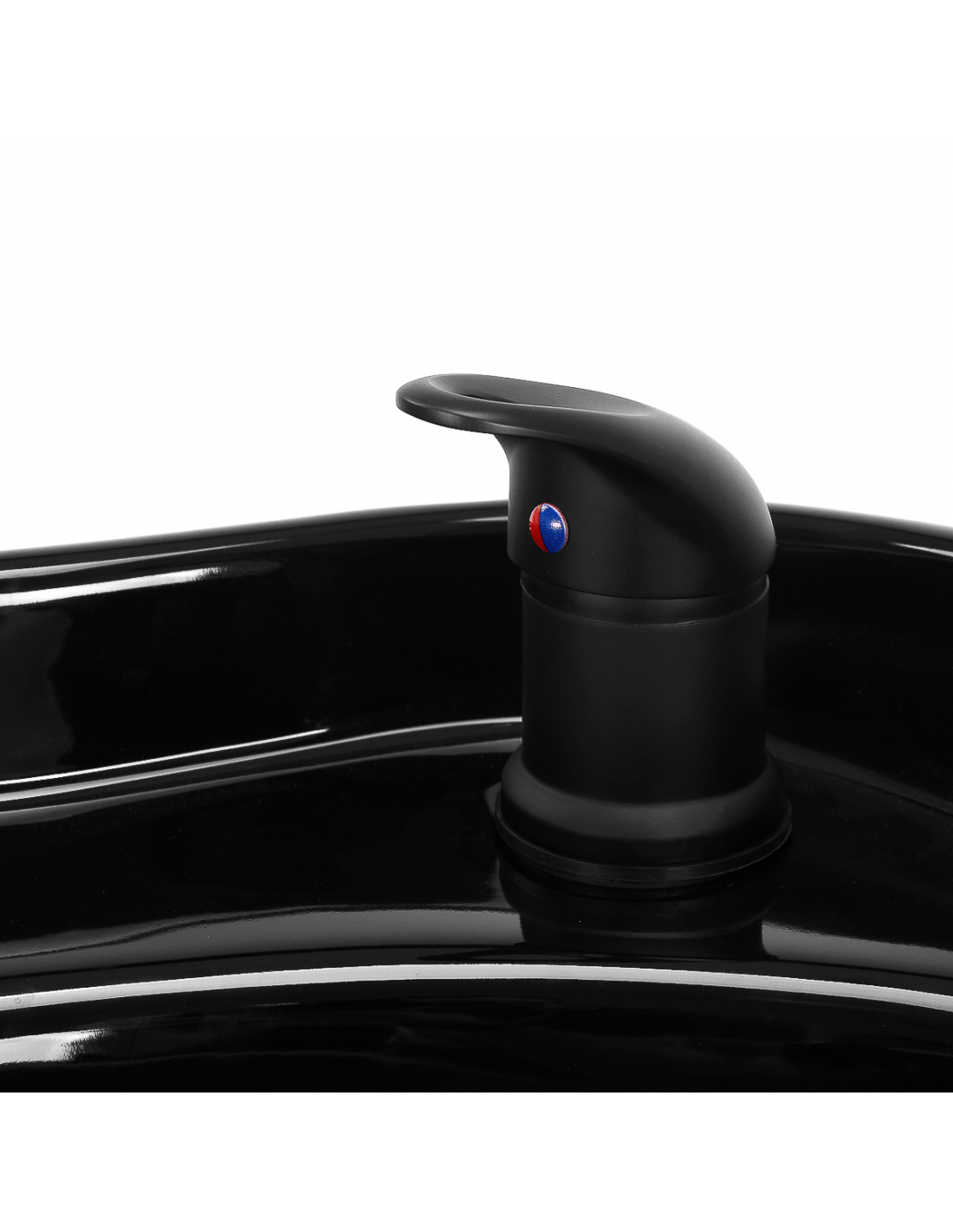 Głęboka, ceramiczna misa w odcieniach czerni ogranicza rozchlapywanie wody oraz kosmetyków używanych podczas zabiegów. Regulowany kąt nachylenia umożliwia dopasowanie jej położenia do indywidualnych potrzeb. Trwały materiał zapewnia odporność na przebarwienia, zarysowania i działanie środków chemicznych, a gładka powierzchnia ułatwia utrzymanie w czystości. Ergonomicznie wyprofilowany kołnierz gwarantuje wygodne podparcie głowy.
