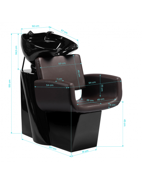 Myjnia fryzjerska Gabbiano Mataro łączy funkcjonalność, komfort i nowoczesny design. Prosty, minimalistyczny fotel o ciekawie zaokrąglonym siedzisku umożliwia wygodne przeprowadzanie zabiegów pielęgnacyjnych oraz komfortowe mycie włosów. Zintegrowana konstrukcja i ergonomiczny kształt siedziska zapewniają wygodę klienta, a jednocześnie wspierają komfort pracy fryzjera. Stylowa forma mebla podkreśla charakter wnętrza, dodając mu profesjonalnego, współczesnego wyglądu.