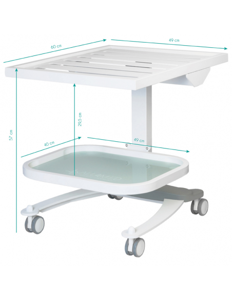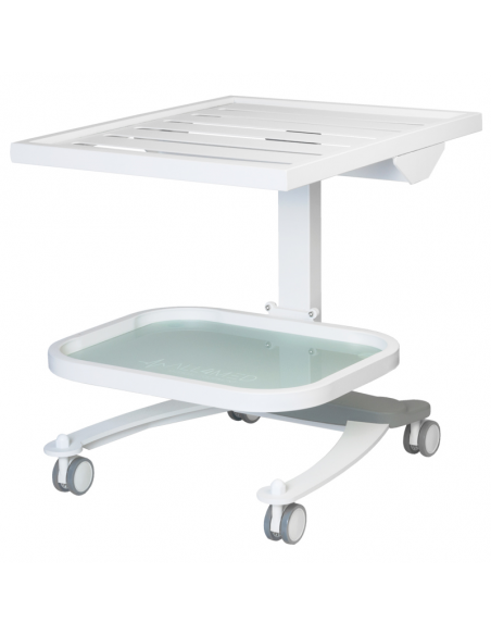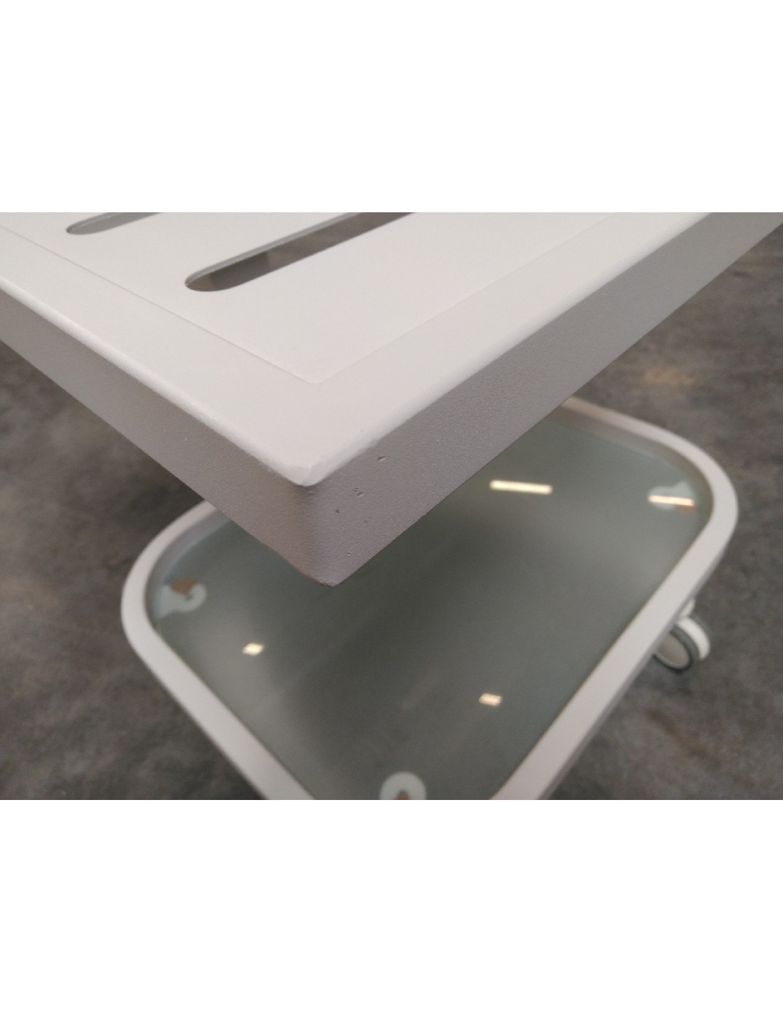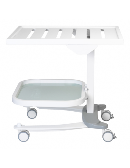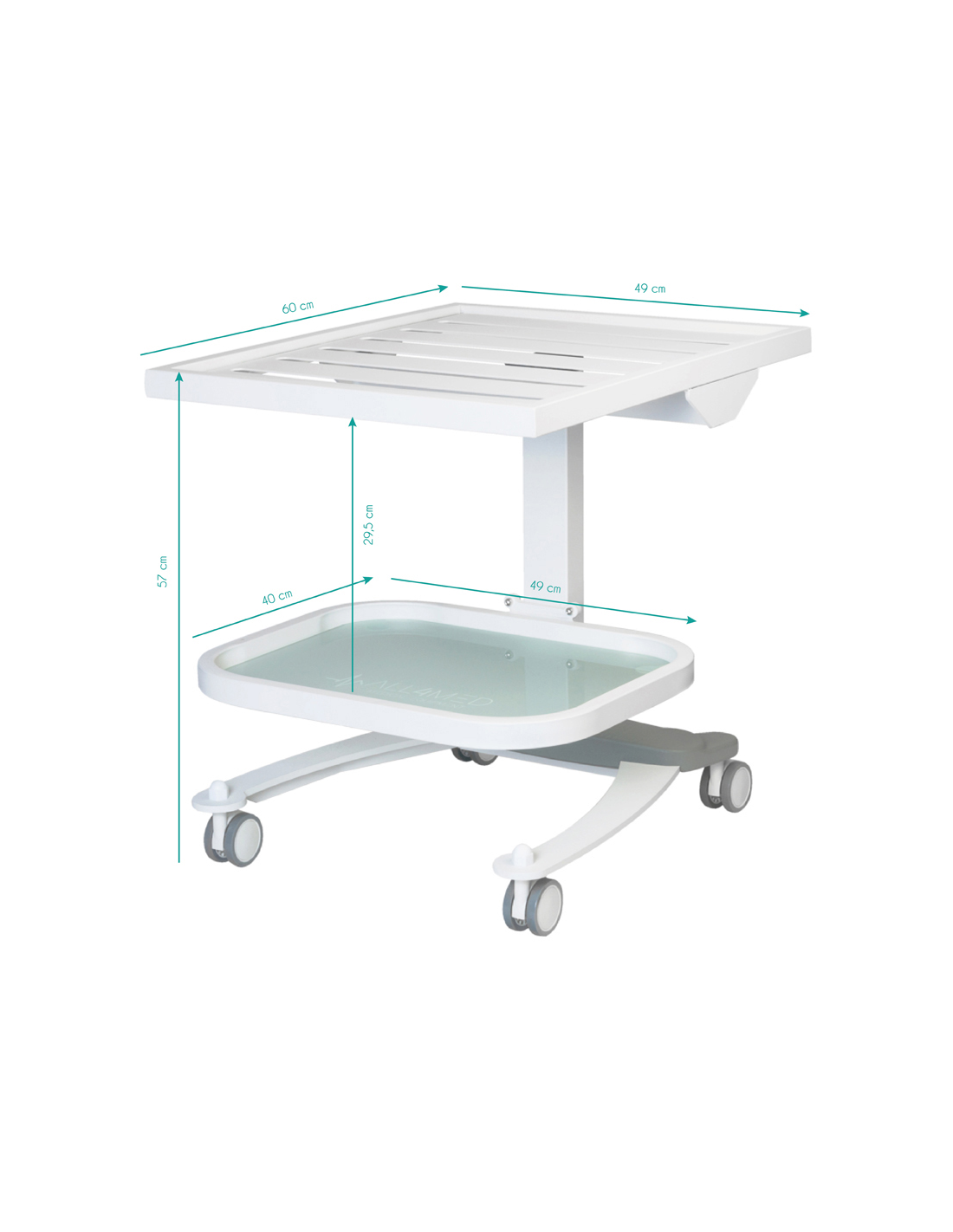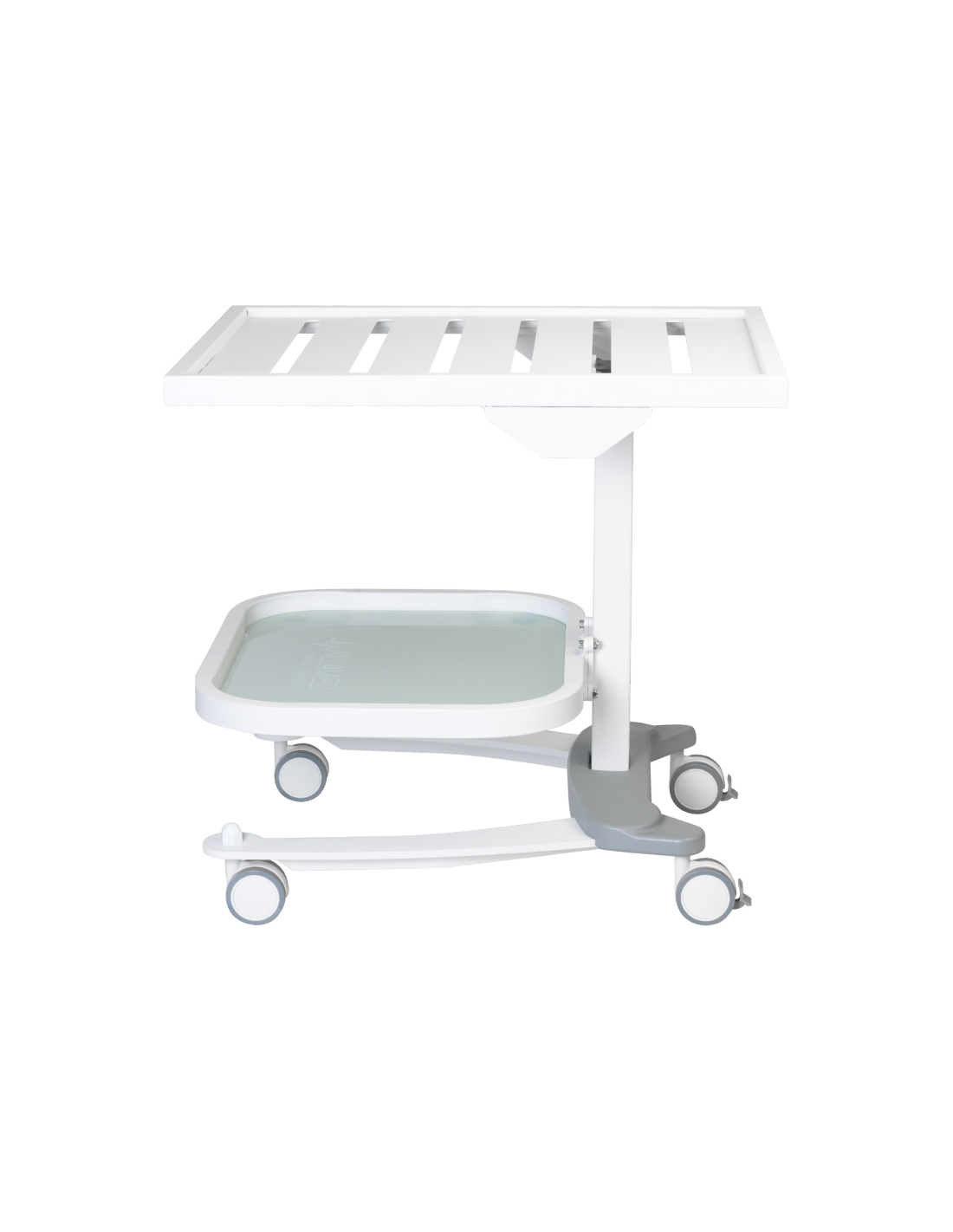 Stolik ATLAS to prawdziwy siłacz wsród stolików. Solidna stalowa konstrukcja umożliwia stawianie ciężkich urządzeń takich jak autoklaw, IPL itp. Stolik wyposażony jest w dodatkową szklaną półkę i duże medyczne kółka z hamulcami zapewniające pełną mobilność.