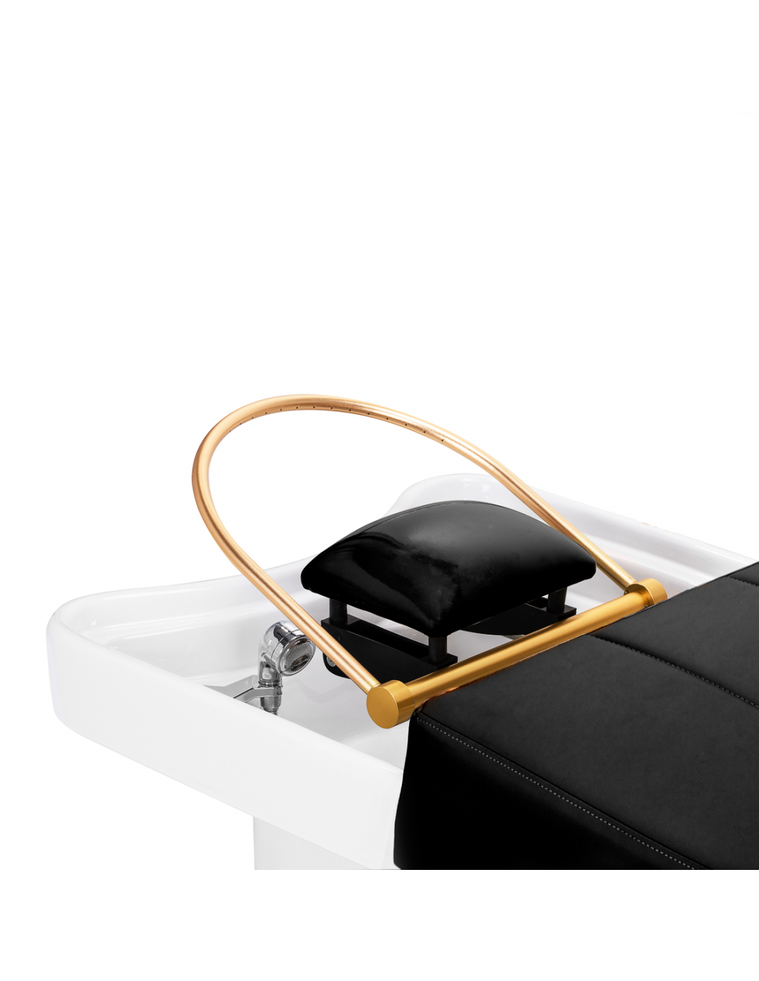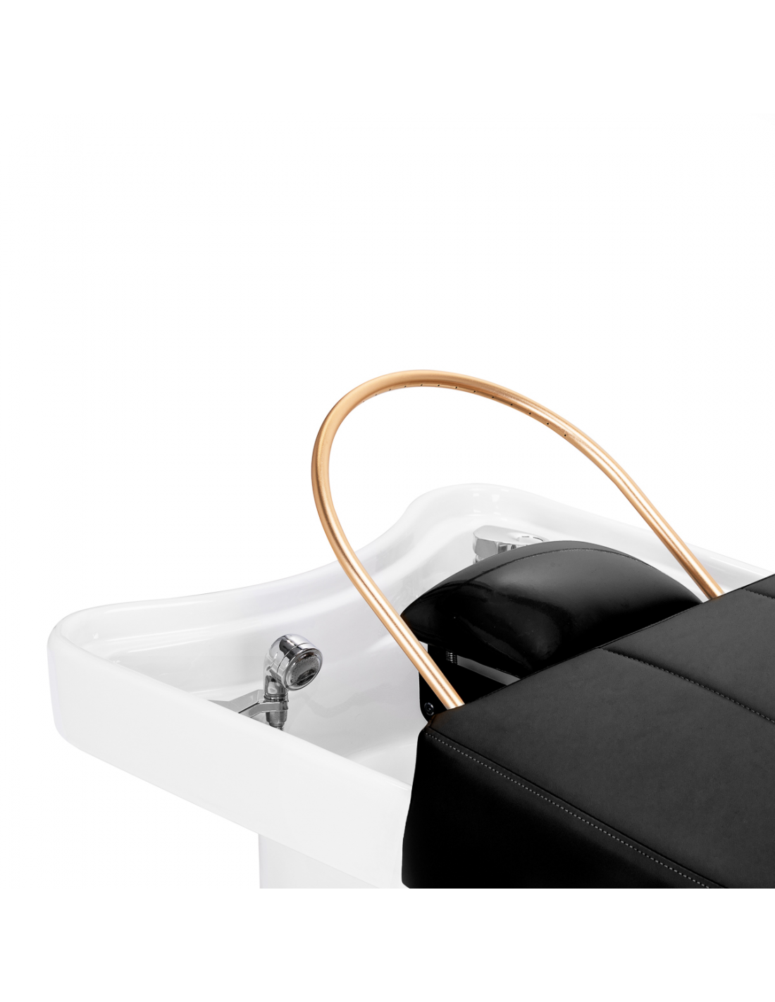 Głęboka ceramiczna misa w odcieniach bieli skutecznie zapobiega rozchlapywaniu wody i produktów stosowanych podczas zabiegów, zapewniając czystość oraz wygodę pracy. Jej unikalne wygięcie nie tylko ułatwia dostęp osobie wykonującej usługę, ale także dodaje myjni eleganckiego, nowoczesnego charakteru. Wykonana z trwałego materiału misa jest odporna na przebarwienia, zarysowania i uszkodzenia, a jej gładka powierzchnia sprawia, że utrzymanie czystości jest wyjątkowo łatwe. Połączenie funkcjonalności i estetyki podnosi standard każdej profesjonalnej przestrzeni.