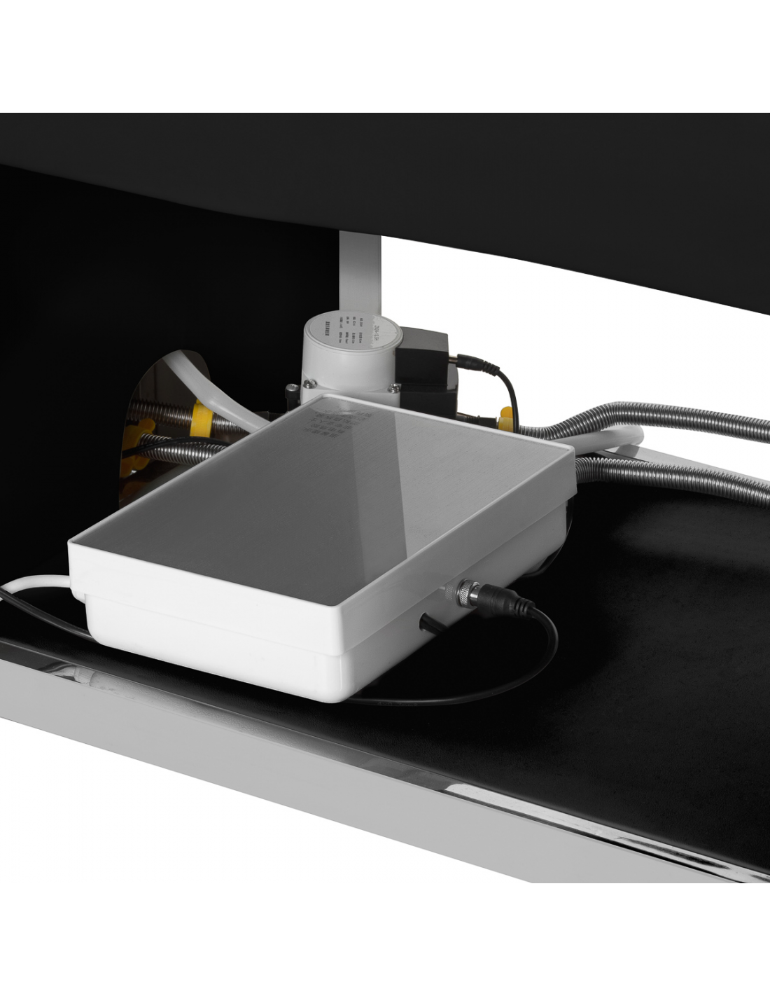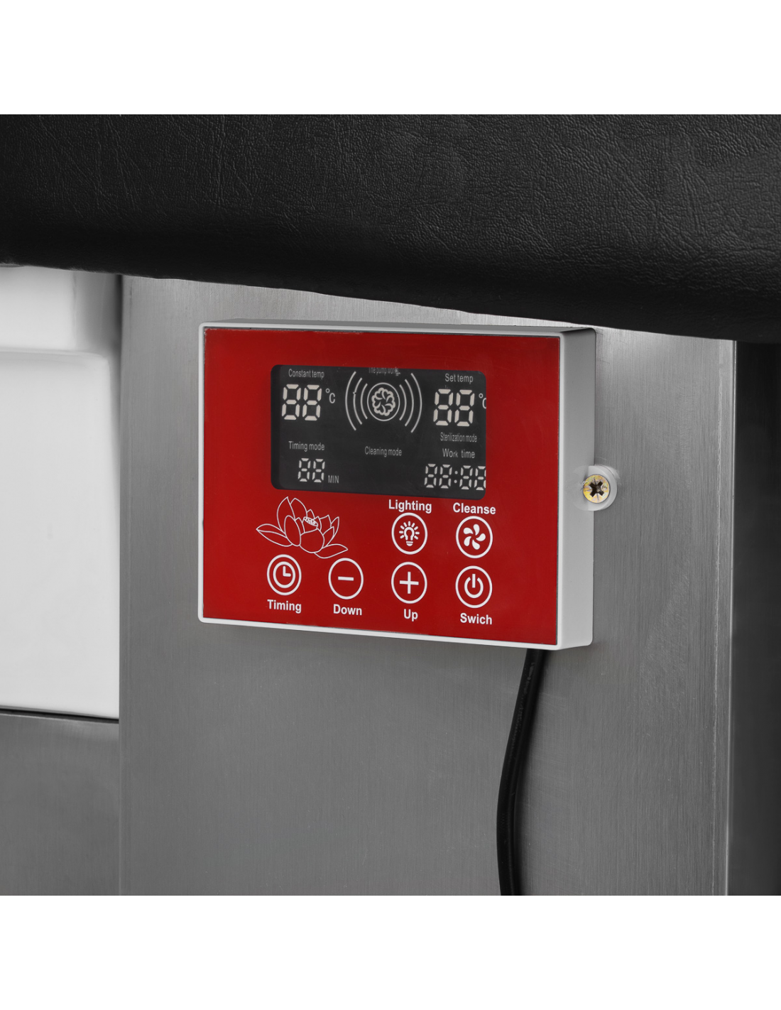 Intuicyjny panel dotykowy umożliwia pełną kontrolę nad parametrami zabiegu, zapewniając wygodę użytkowania. Umożliwia regulację czasu pracy oraz temperatury wody, a także monitorowanie ich aktualnych wartości. Dzięki wbudowanemu wyświetlaczowi możesz w każdej chwili sprawdzić, ile czasu urządzenie już pracuje. Panel pozwala również na włączenie funkcji światłoterapii, czyli podświetlenia misy, tworząc atmosferę relaksu i luksusu. Dodatkowo, urządzenie do terapii parowej wyposażone jest w pilota umożliwiającego wygodną obsługę na odległość.