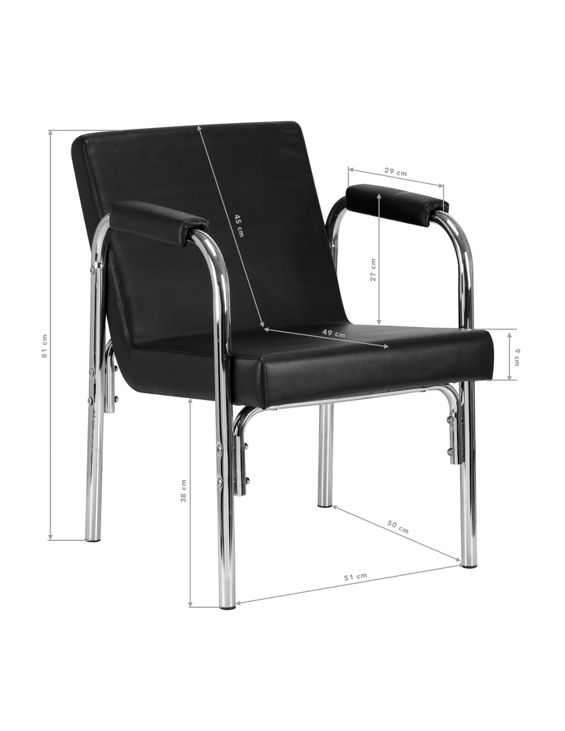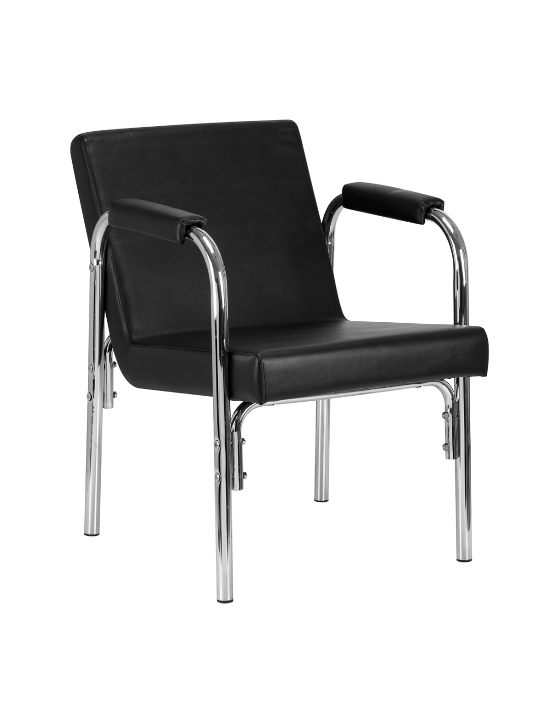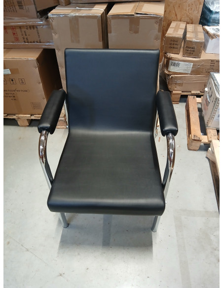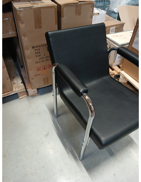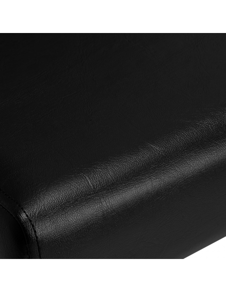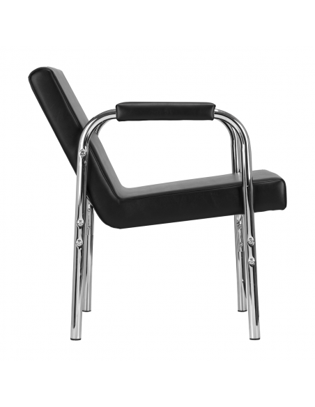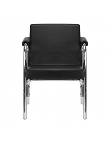 Opływowy profil nadaje meblowi nowoczesny wygląd, a eleganckie elementy w odcieniach chromu podkreślają charakter. Przyjemne w dotyku obicie z wysokiej jakości skóry syntetycznej w odcieniach czerni oraz trwałej pianki, zapewniając wysoki komfort użytkowania. Wytrzymałe materiały gwarantują długotrwałą użyteczność fotela. Stosunkowo niewielka waga mebla sprawia, że łatwo go przestawić, co jest szczególnie przydatne podczas intensywnego dnia pracy w salonie fryzjerskim. Odpowiednie wyprofilowanie sprawia, że fotel spełni wymagania nawet najbardziej wymagających klientów.